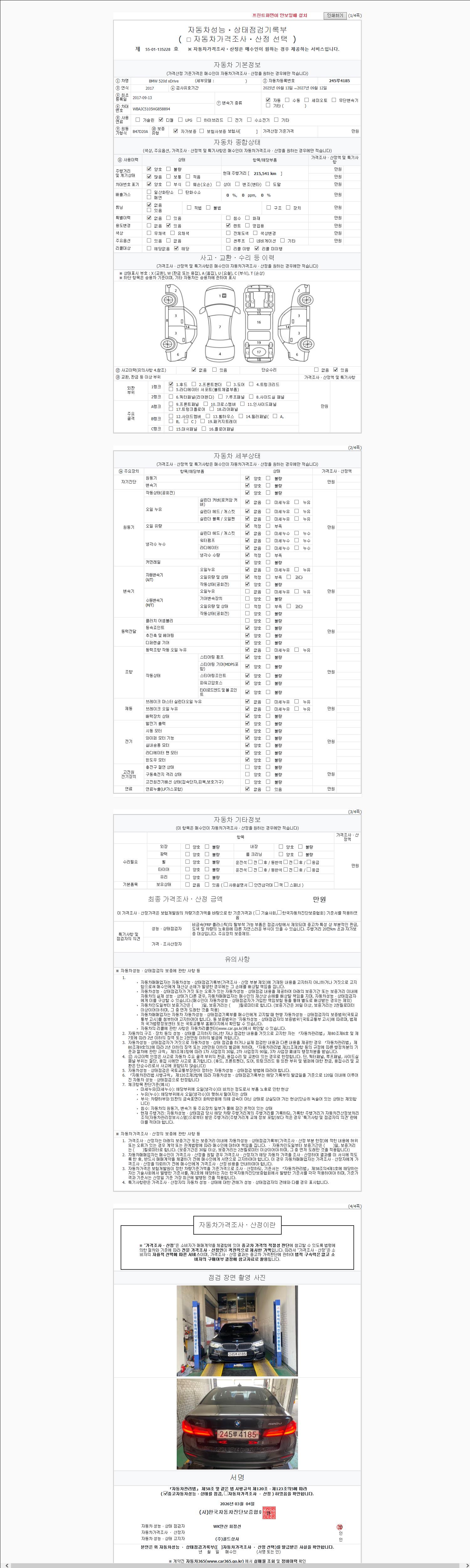 -중고자동차 매매업자를 통해 차량을 구입하실 경우 반드시 "중고자동차 성능, 상태점검 기록부"를 교뷰 받으셔야 하며, 매매업자는 반드시 의무 교부 하여야 압니다.