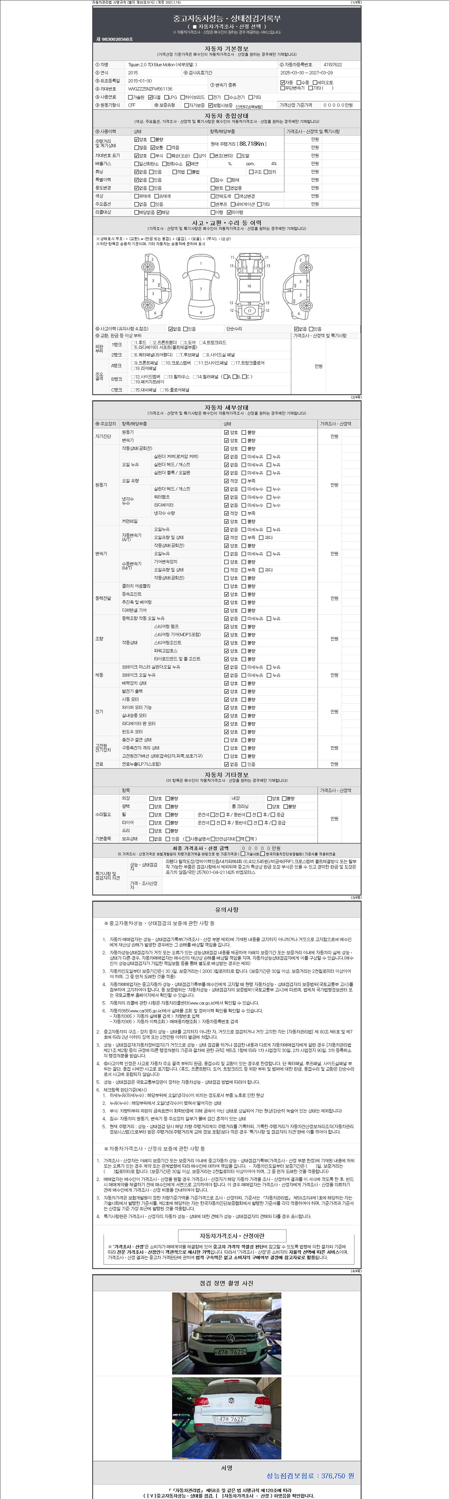 2. 차량 등록증이나 성능점검지 등을 상담자에게 요청및 확인하시고 사전에 미리 점검 하시기를 권유드립니다.