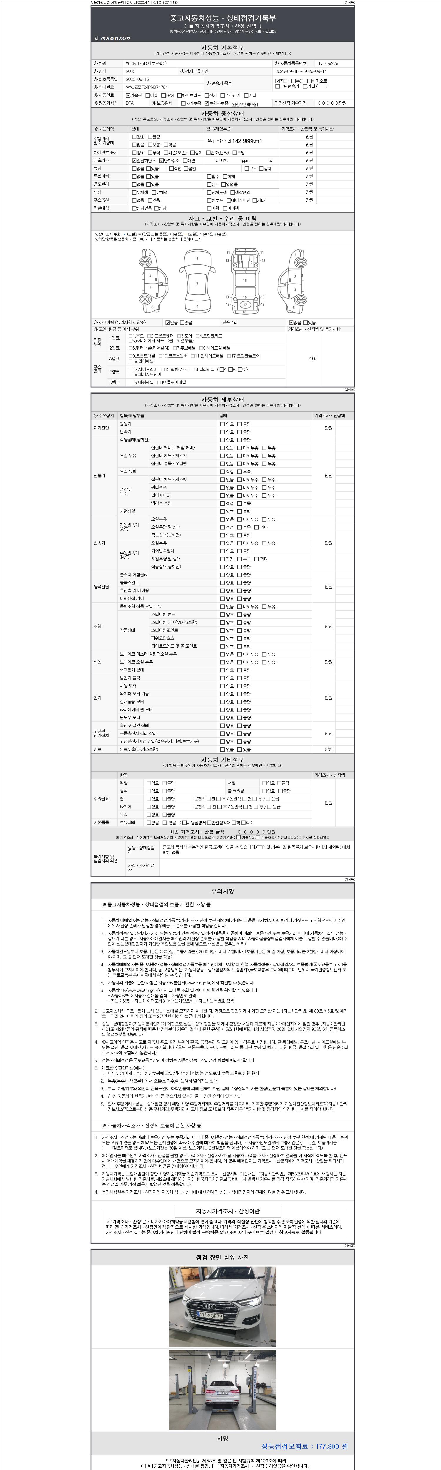 2. 차량 등록증이나 성능점검지 등을 상담자에게 요청및 확인하시고 사전에 미리 점검 하시기를 권유드립니다.