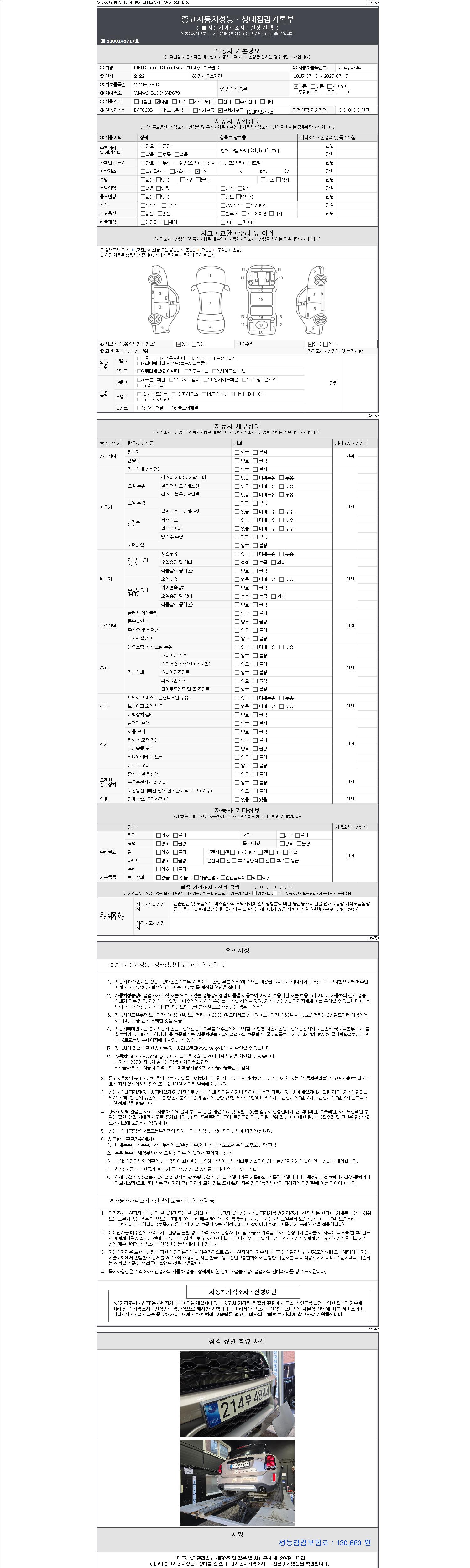 -중고자동차 매매업자를 통해 차량을 구입하실 경우 반드시 "중고자동차 성능, 상태점검 기록부"를 교뷰 받으셔야 하며, 매매업자는 반드시 의무 교부 하여야 압니다.