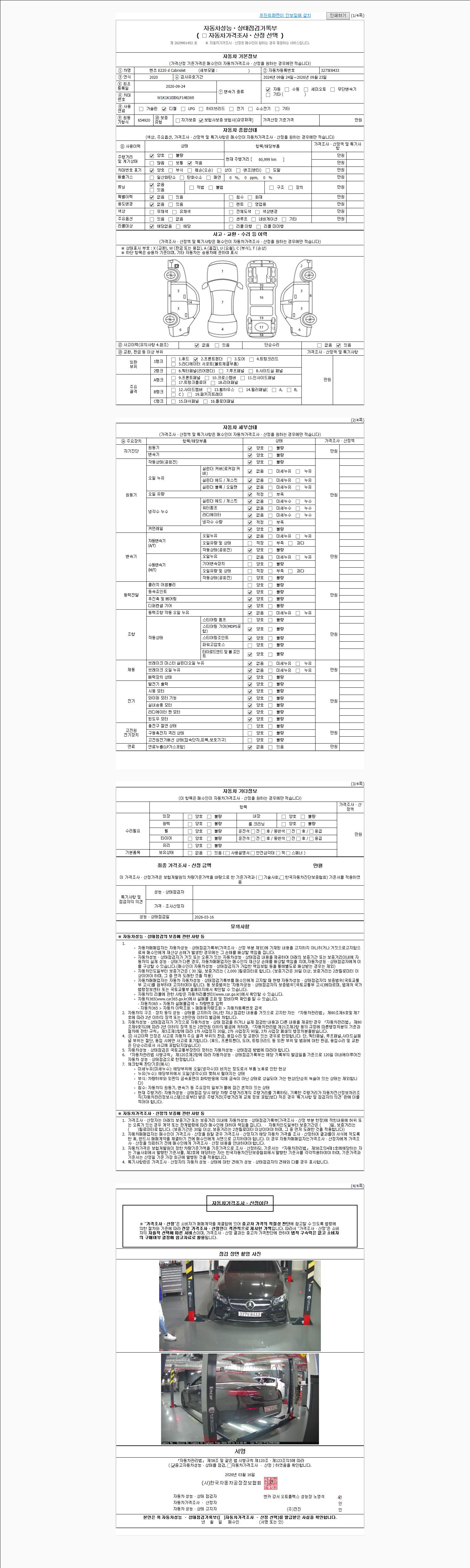 2. 차량 등록증이나 성능점검지 등을 상담자에게 요청및 확인하시고 사전에 미리 점검 하시기를 권유드립니다.