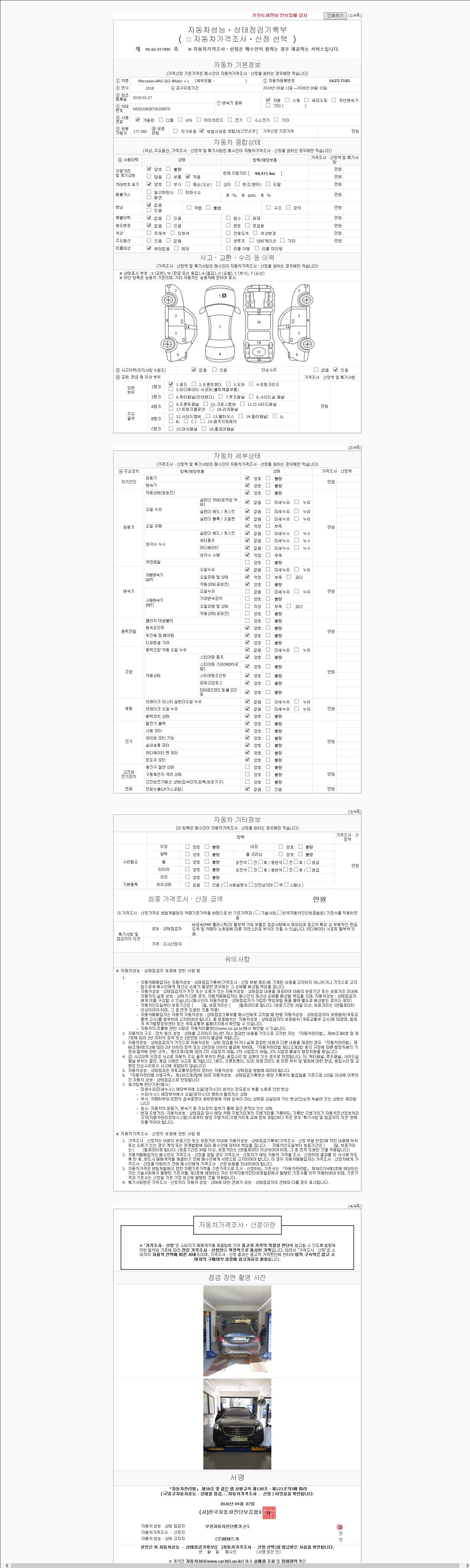 2. 차량 등록증이나 성능점검지 등을 상담자에게 요청및 확인하시고 사전에 미리 점검 하시기를 권유드립니다.