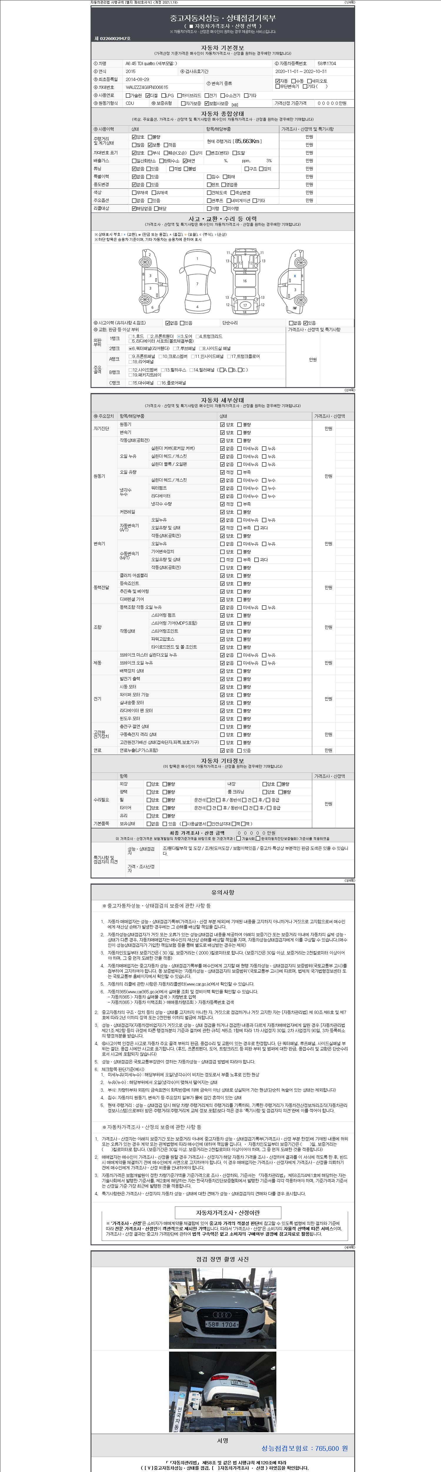 2. 차량 등록증이나 성능점검지 등을 상담자에게 요청및 확인하시고 사전에 미리 점검 하시기를 권유드립니다.