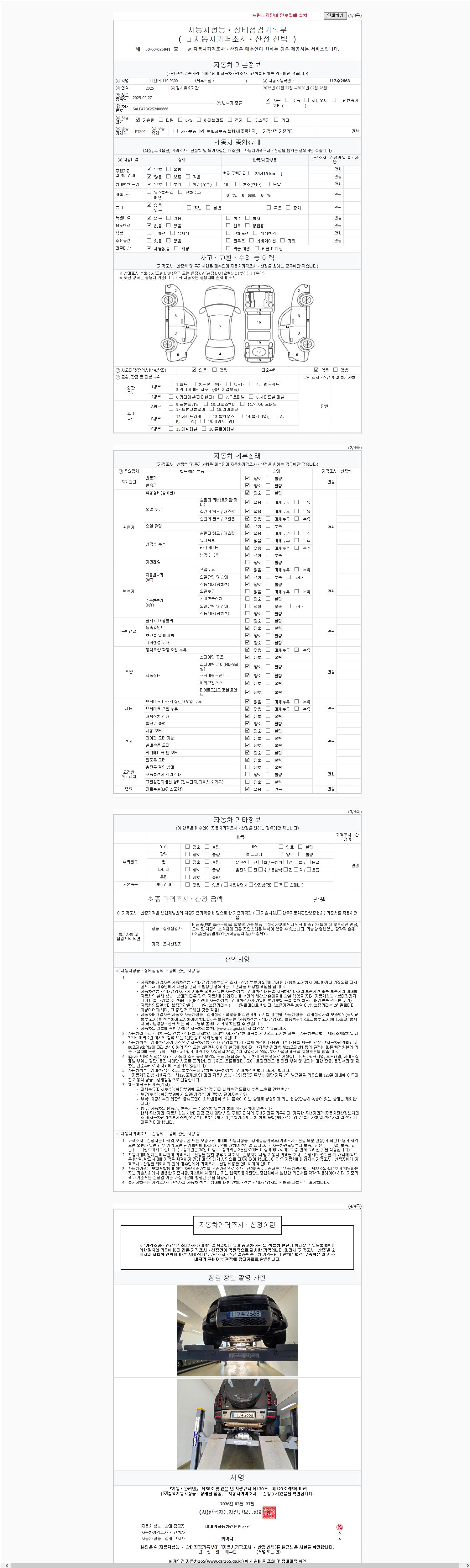 | 주행거리 | 25,415 km | 차량번호 | 117주2668 |