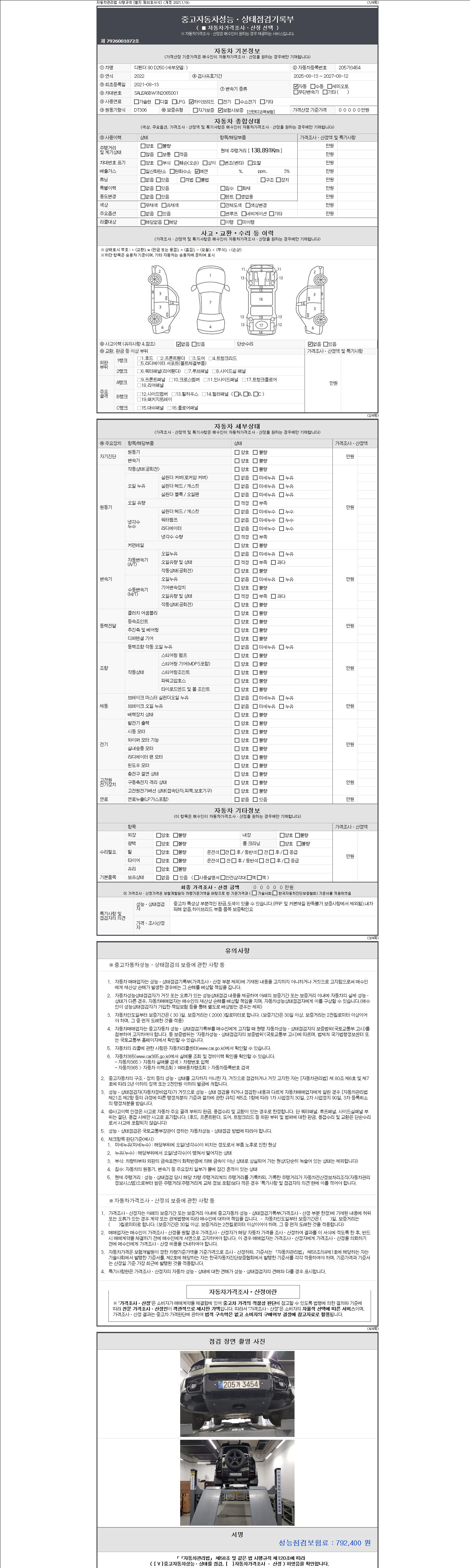 2. 차량 등록증이나 성능점검지 등을 상담자에게 요청및 확인하시고 사전에 미리 점검 하시기를 권유드립니다.