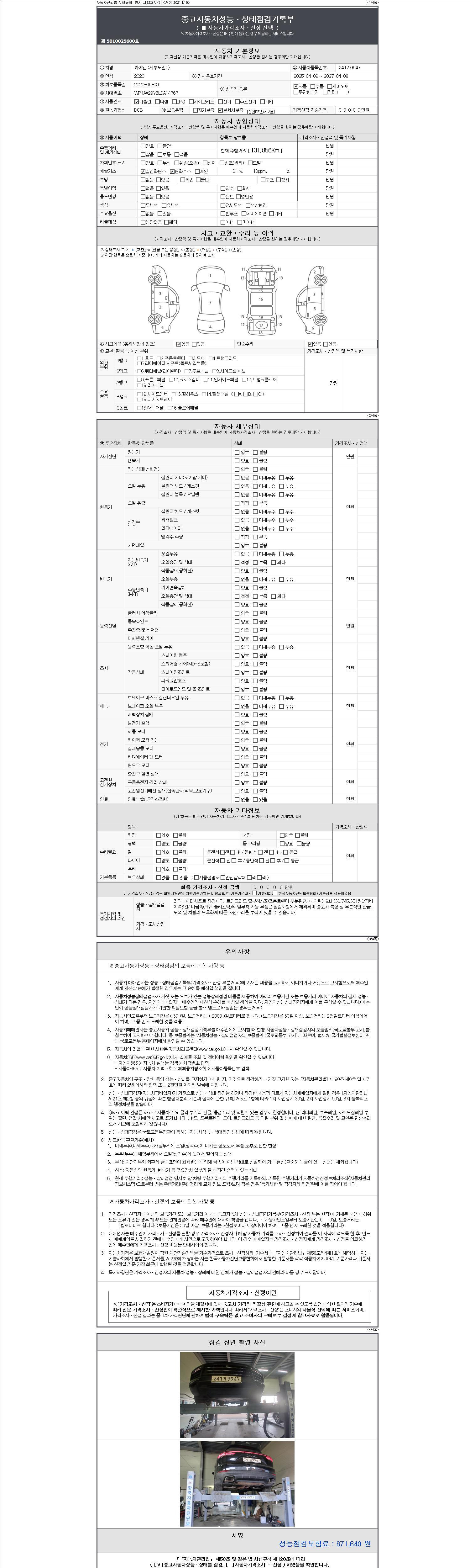2. 차량 등록증이나 성능점검지 등을 상담자에게 요청및 확인하시고 사전에 미리 점검 하시기를 권유드립니다.