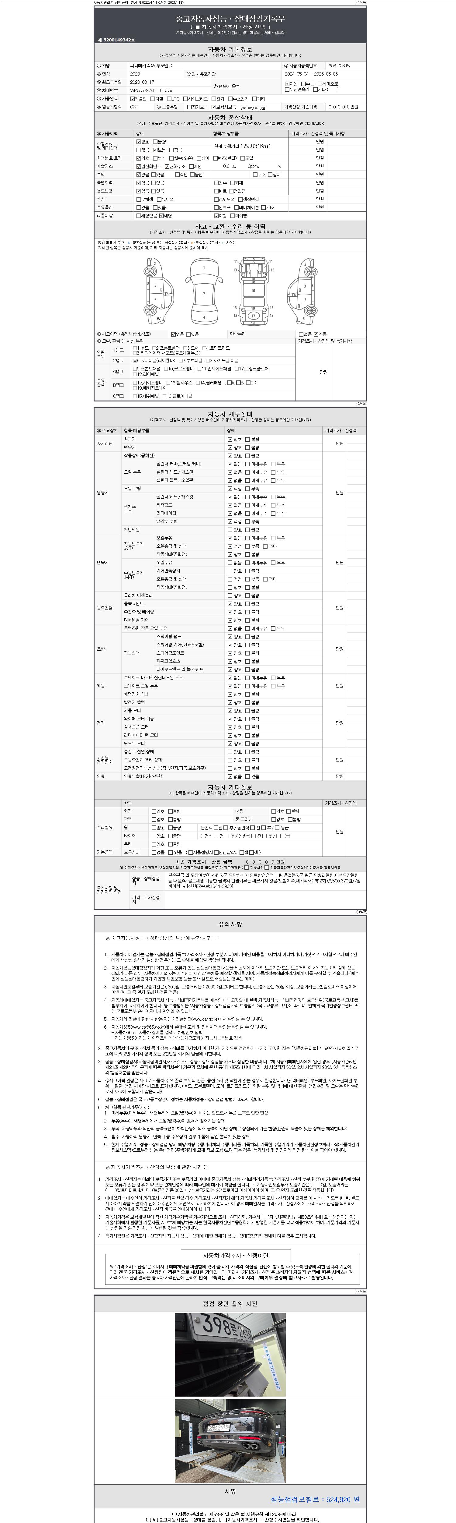 2. 차량 등록증이나 성능점검지 등을 상담자에게 요청및 확인하시고 사전에 미리 점검 하시기를 권유드립니다.