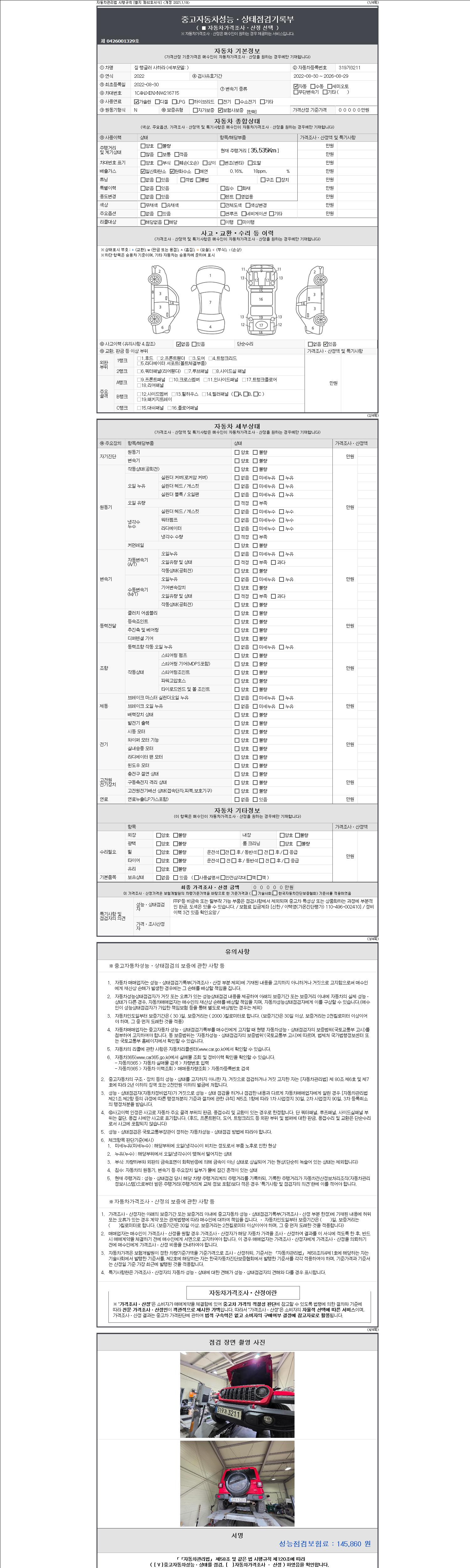 2. 차량 등록증이나 성능점검지 등을 상담자에게 요청및 확인하시고 사전에 미리 점검 하시기를 권유드립니다.