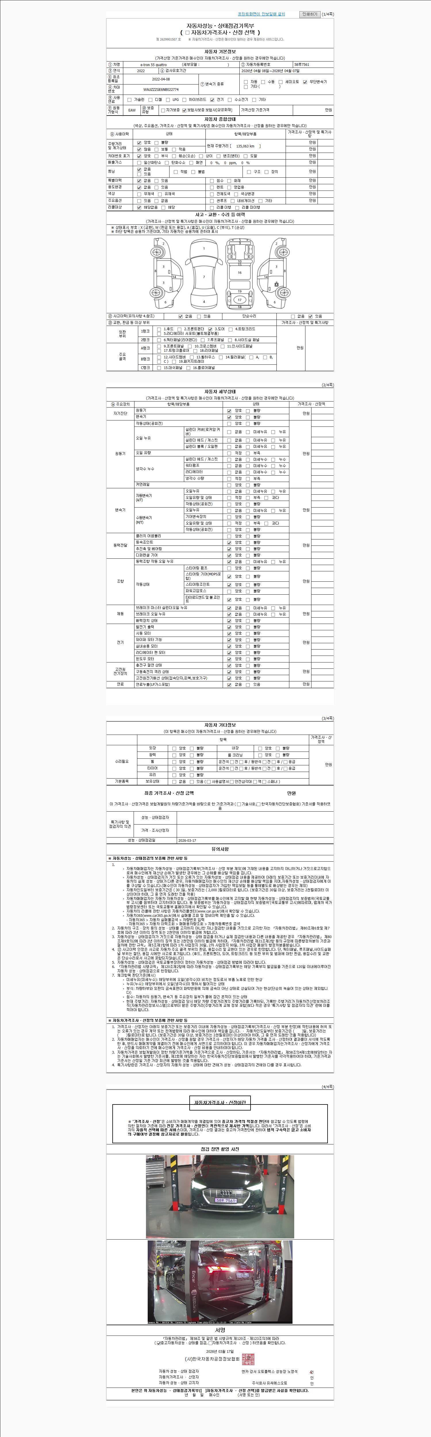 2. 차량 등록증이나 성능점검지 등을 상담자에게 요청및 확인하시고 사전에 미리 점검 하시기를 권유드립니다.