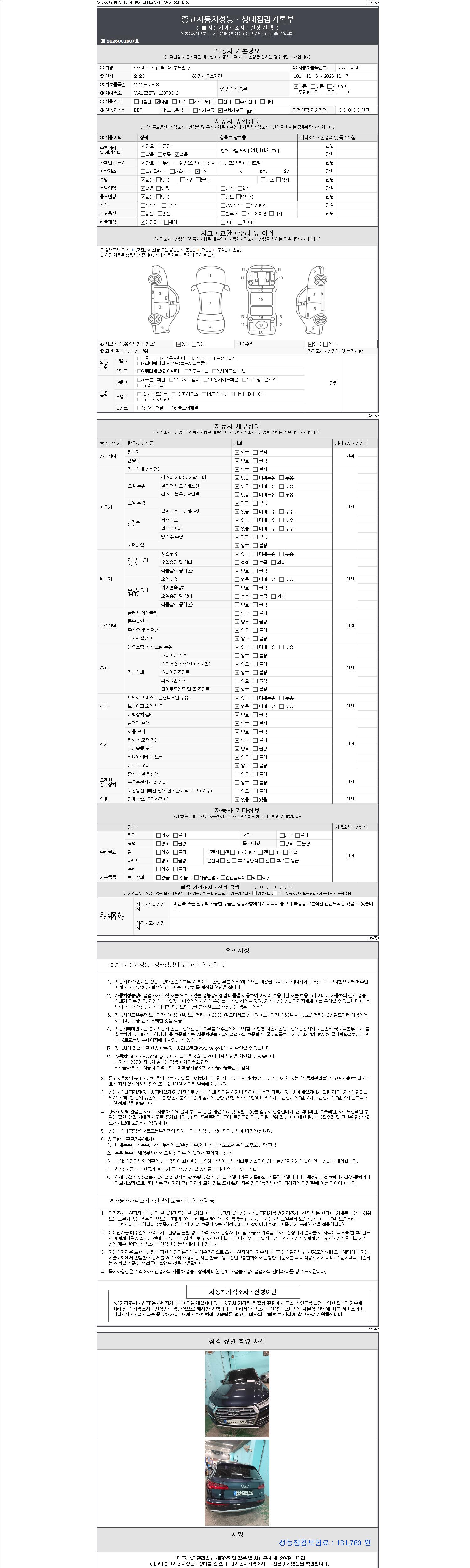 2. 차량 등록증이나 성능점검지 등을 상담자에게 요청및 확인하시고 사전에 미리 점검 하시기를 권유드립니다.