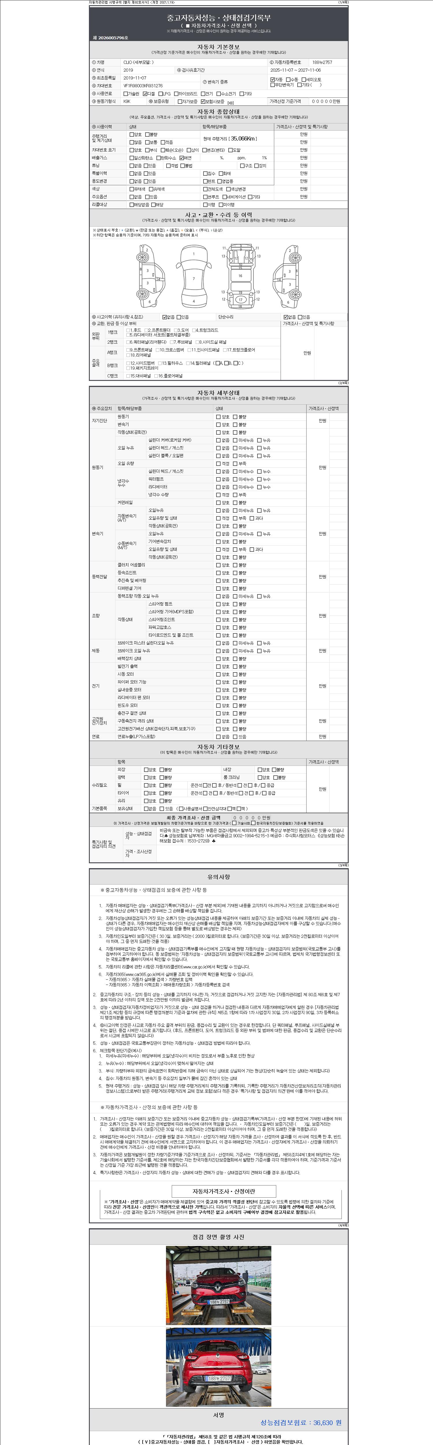| 주행거리 | 35,066 km | 차량번호 | 188누2757 |