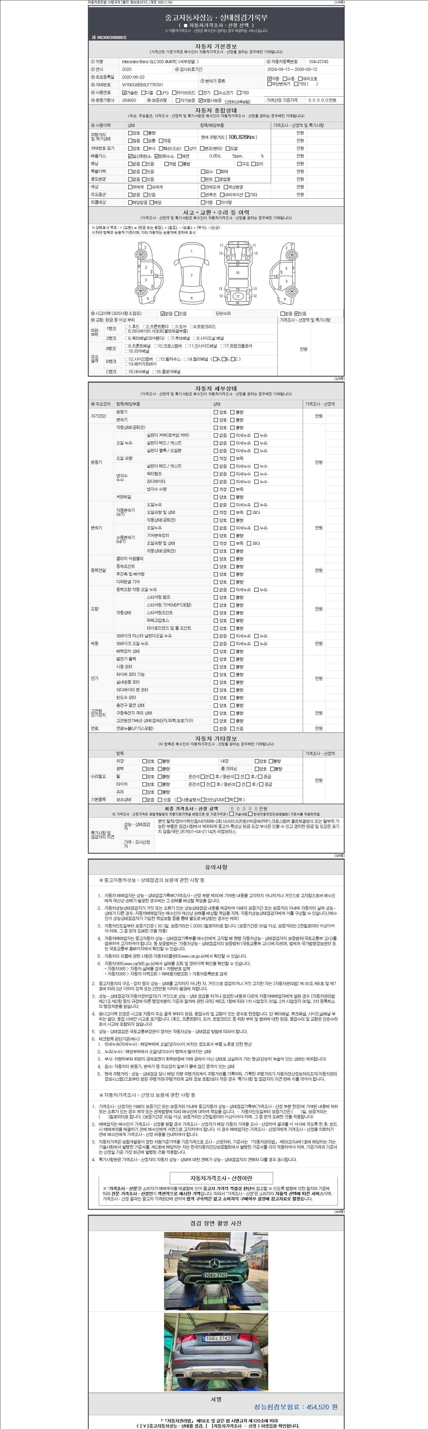 | 주행거리 | 106,826 km | 차량번호 | 104나3743 |
