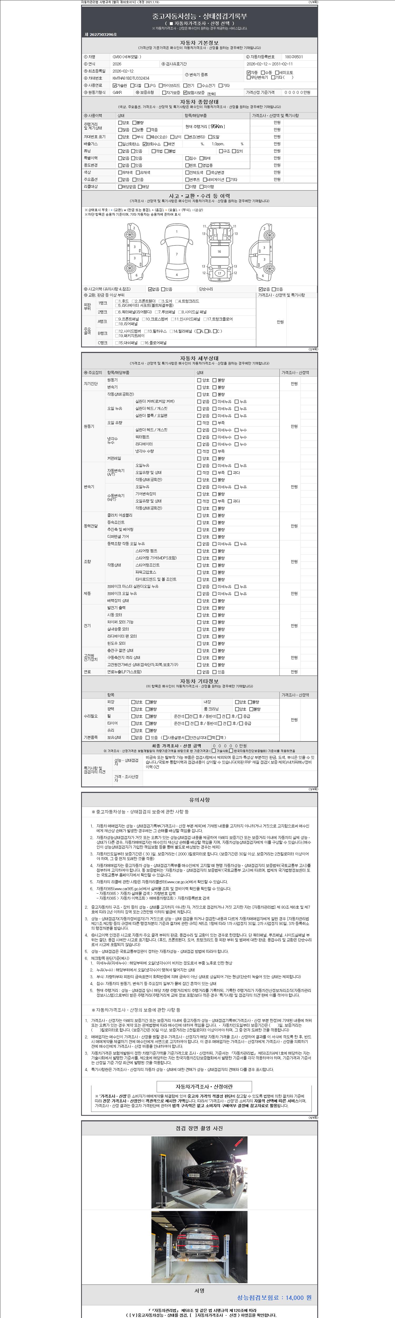 2. 차량 등록증이나 성능점검지 등을 상담자에게 요청및 확인하시고 사전에 미리 점검 하시기를 권유드립니다.