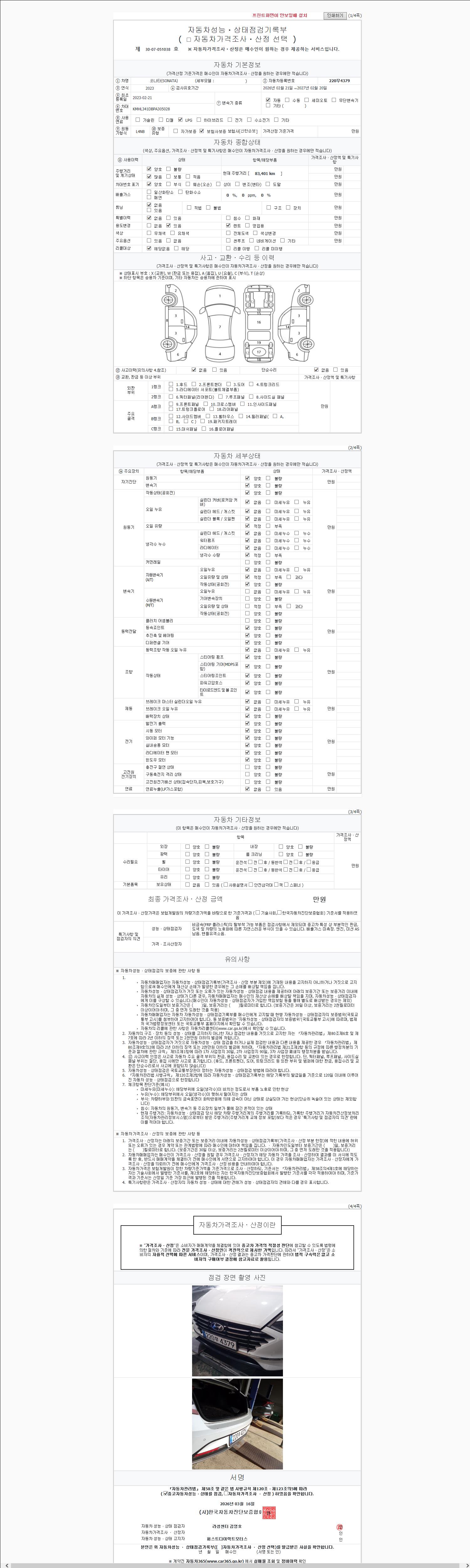 | 주행거리 | 83,401 km | 차량번호 | 220무4379 |