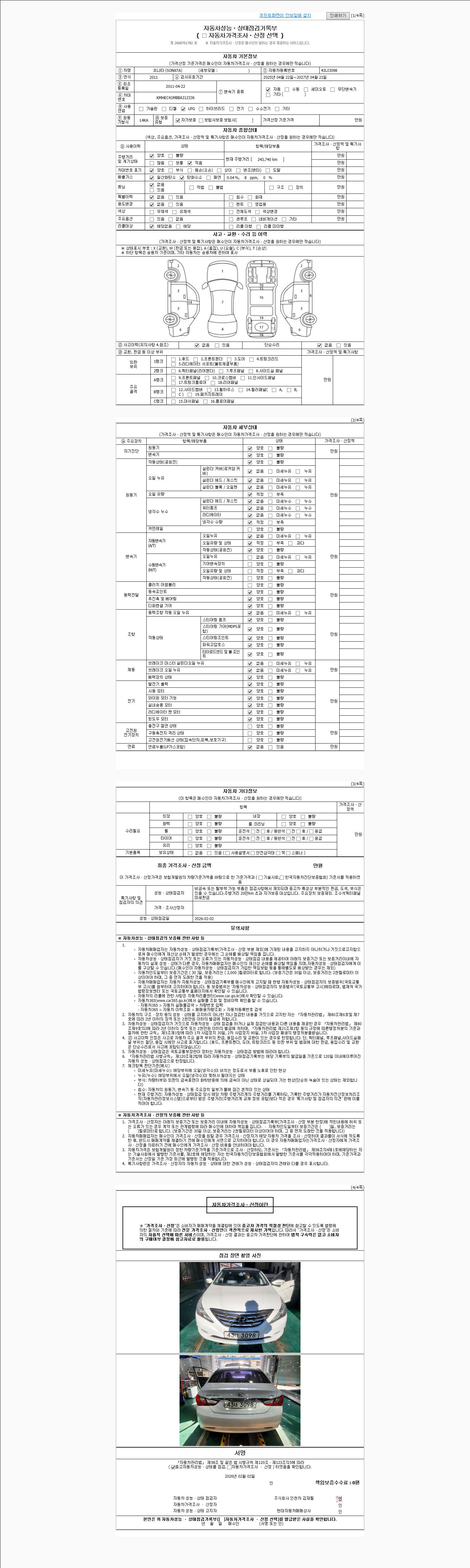 | 사고유무 | 성능기록부 참조 | 제시번호 | 제 2026004584 호 |