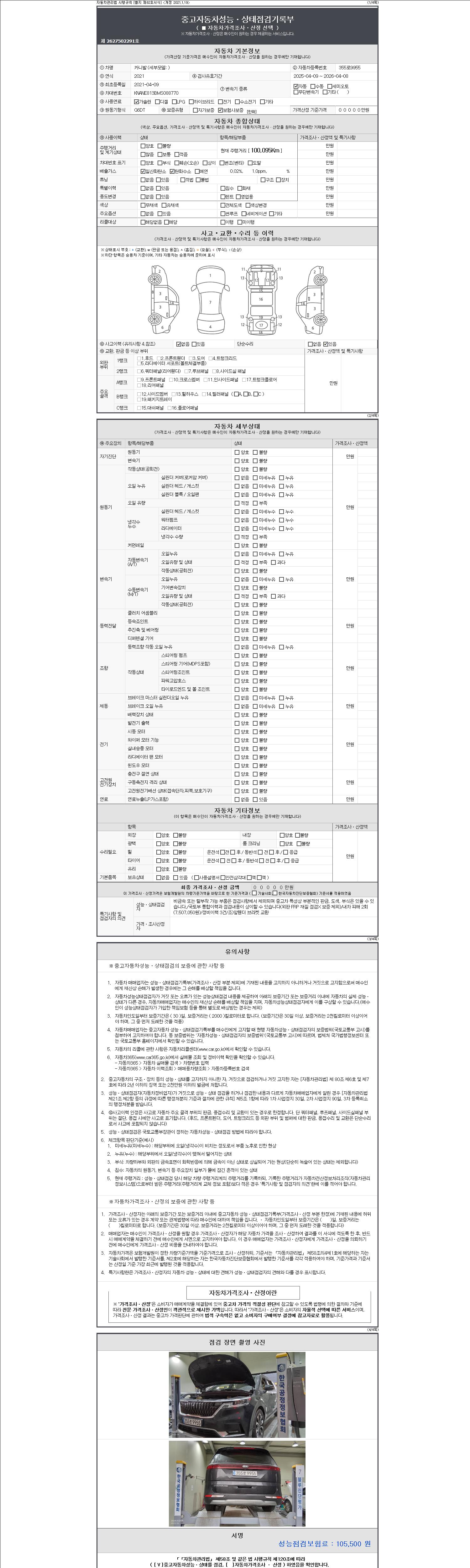 2. 차량 등록증이나 성능점검지 등을 상담자에게 요청및 확인하시고 사전에 미리 점검 하시기를 권유드립니다.