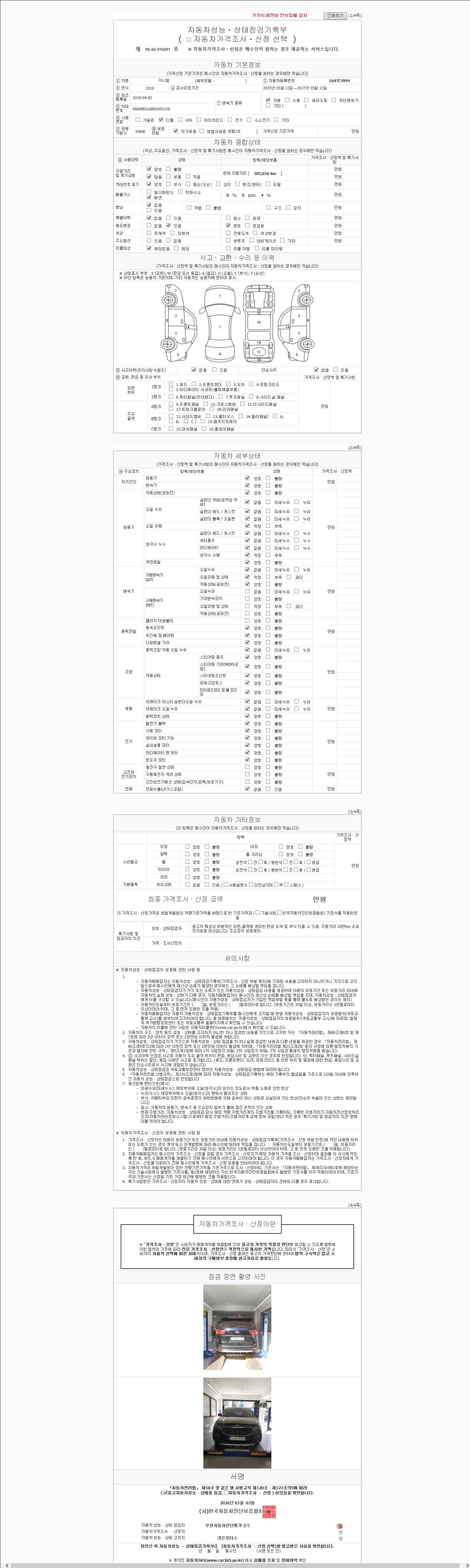 2. 차량 등록증이나 성능점검지 등을 상담자에게 요청및 확인하시고 사전에 미리 점검 하시기를 권유드립니다.