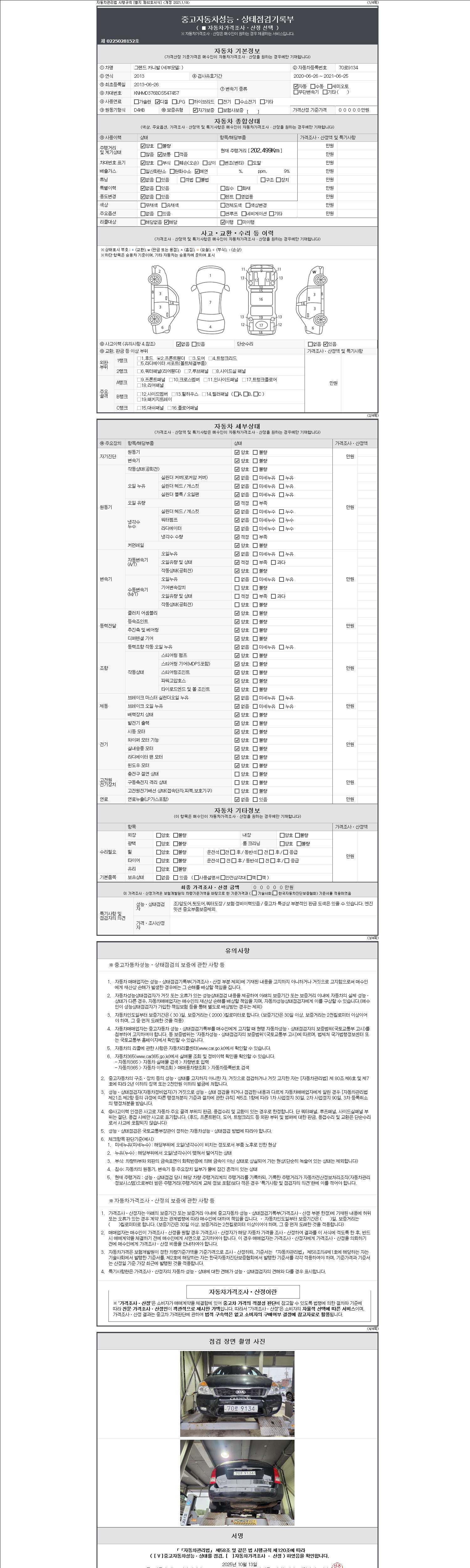 2. 차량 등록증이나 성능점검지 등을 상담자에게 요청및 확인하시고 사전에 미리 점검 하시기를 권유드립니다.