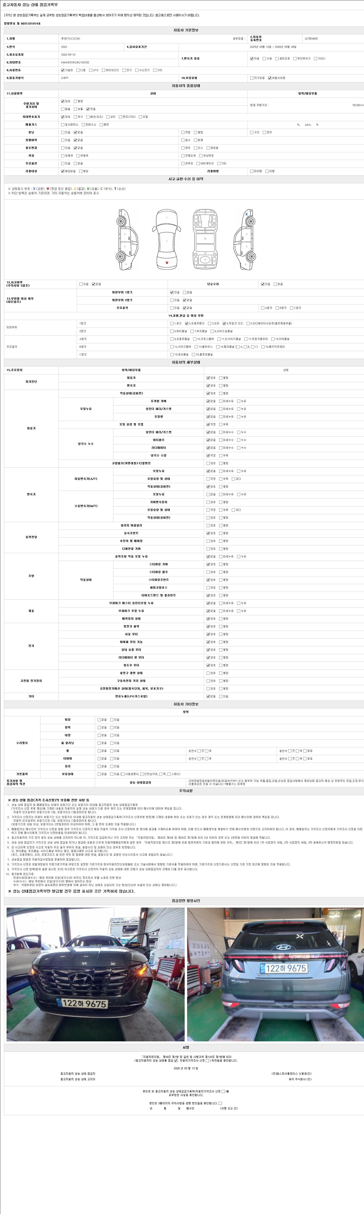 2. 차량 등록증이나 성능점검지 등을 상담자에게 요청및 확인하시고 사전에 미리 점검 하시기를 권유드립니다.