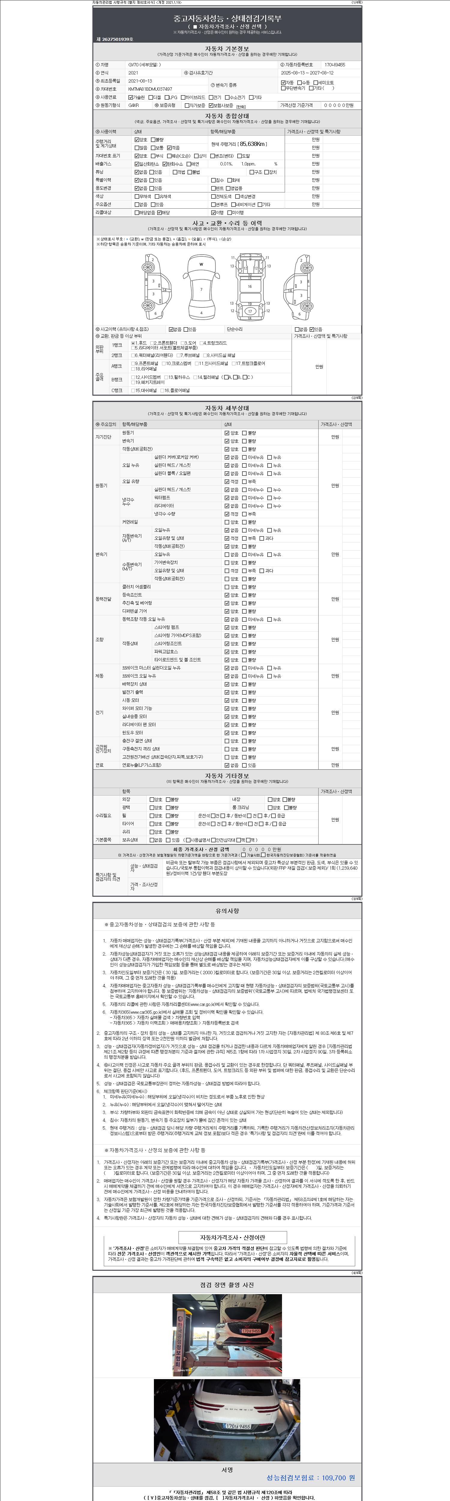 2. 차량 등록증이나 성능점검지 등을 상담자에게 요청및 확인하시고 사전에 미리 점검 하시기를 권유드립니다.