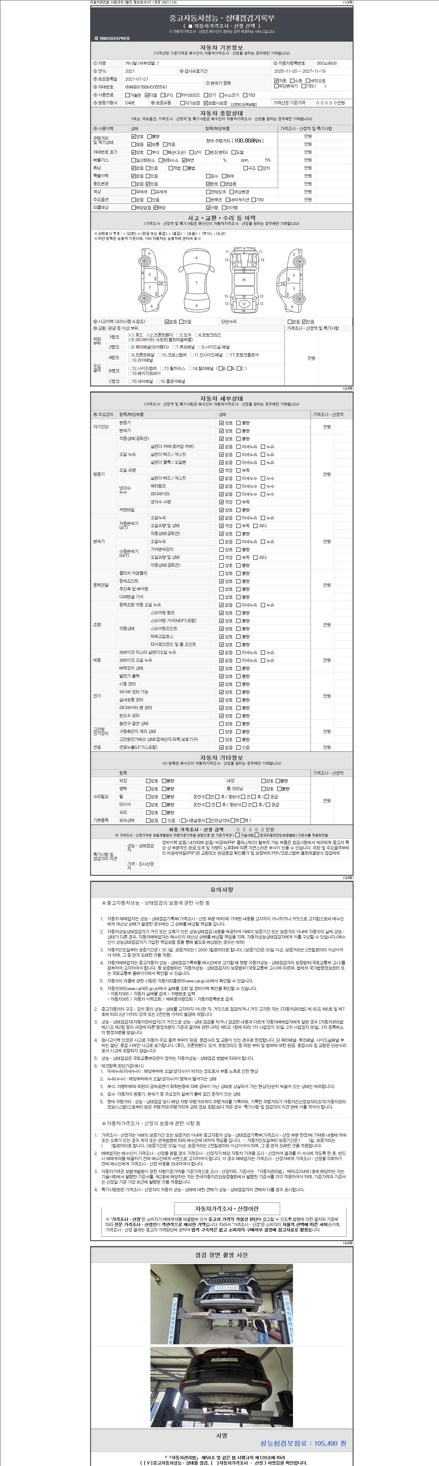 -중고자동차 매매업자를 통해 차량을 구입하실 경우 반드시 "중고자동차 성능, 상태점검 기록부"를 교뷰 받으셔야 하며, 매매업자는 반드시 의무 교부 하여야 압니다.