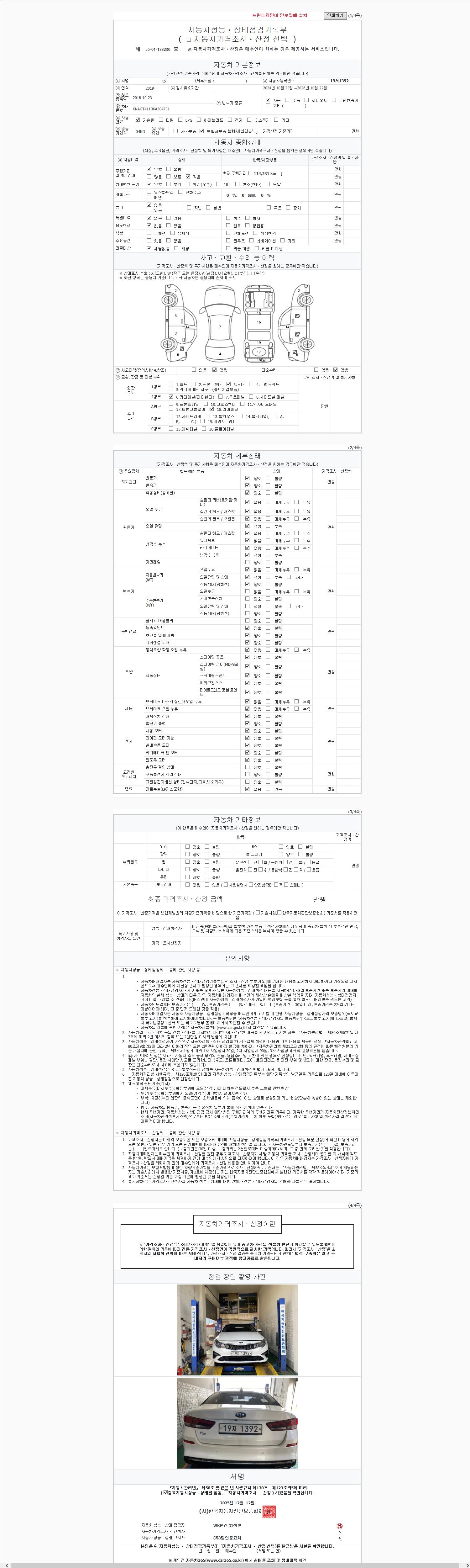 | 주행거리 | 114,231 km | 차량번호 | 19저1392 |
