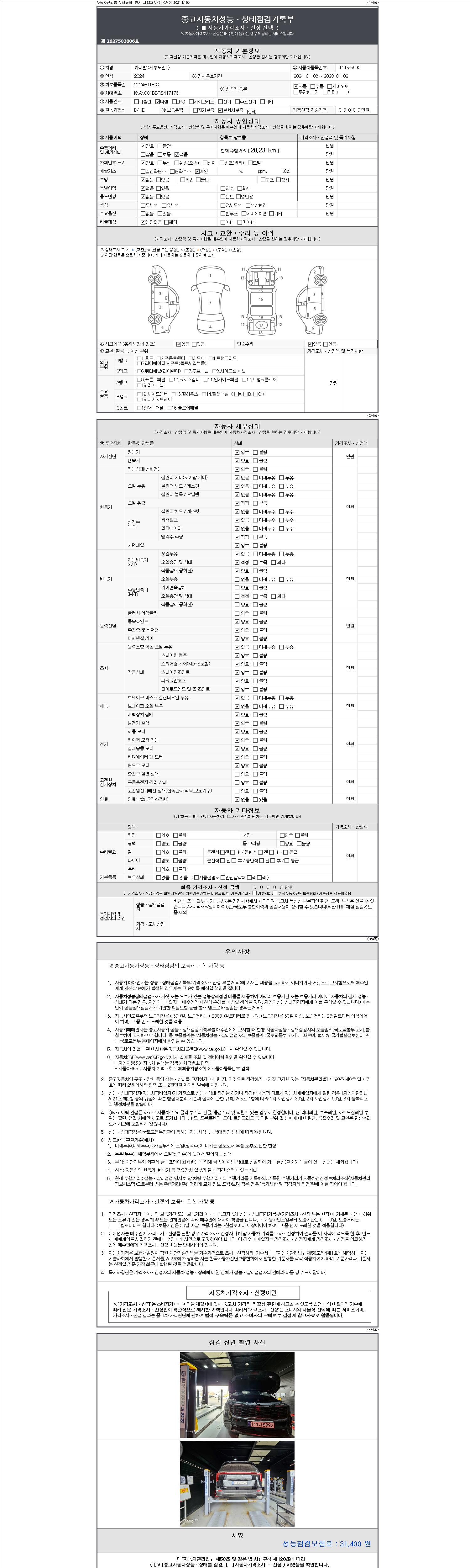 2. 차량 등록증이나 성능점검지 등을 상담자에게 요청및 확인하시고 사전에 미리 점검 하시기를 권유드립니다.