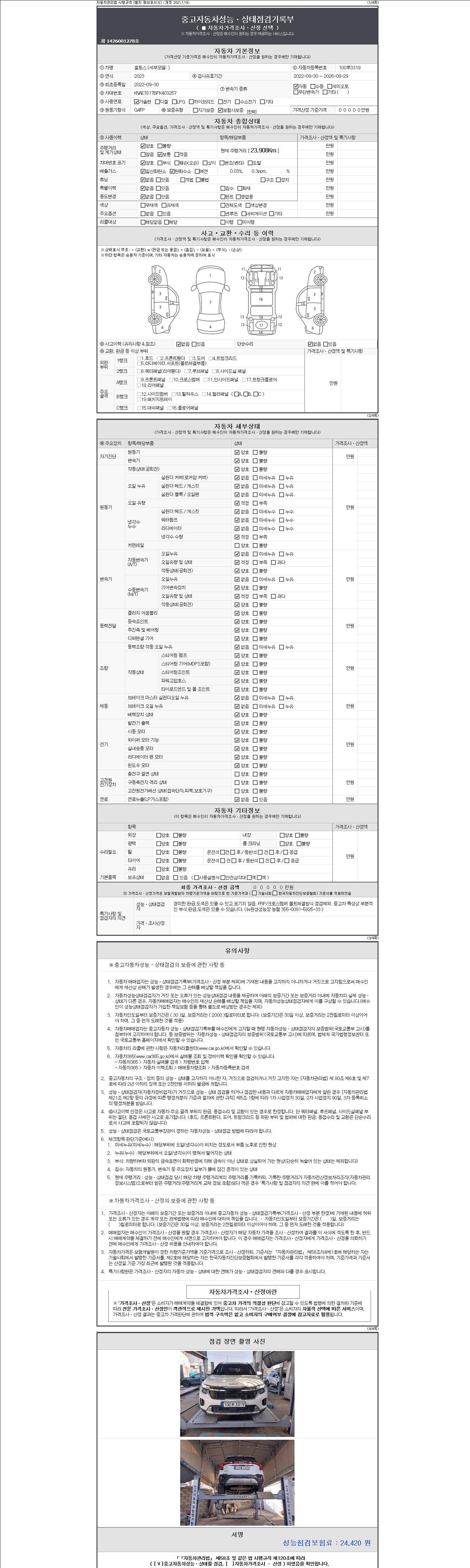 | 주행거리 | 23,908 km | 차량번호 | 100루3319 |