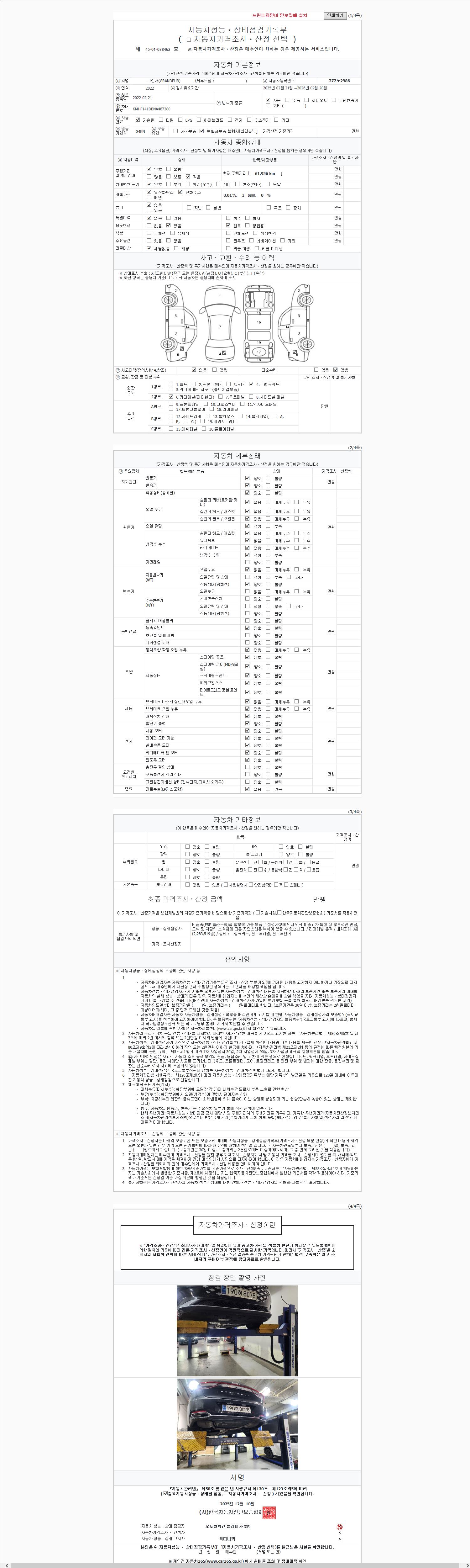 2. 차량 등록증이나 성능점검지 등을 상담자에게 요청및 확인하시고 사전에 미리 점검 하시기를 권유드립니다.