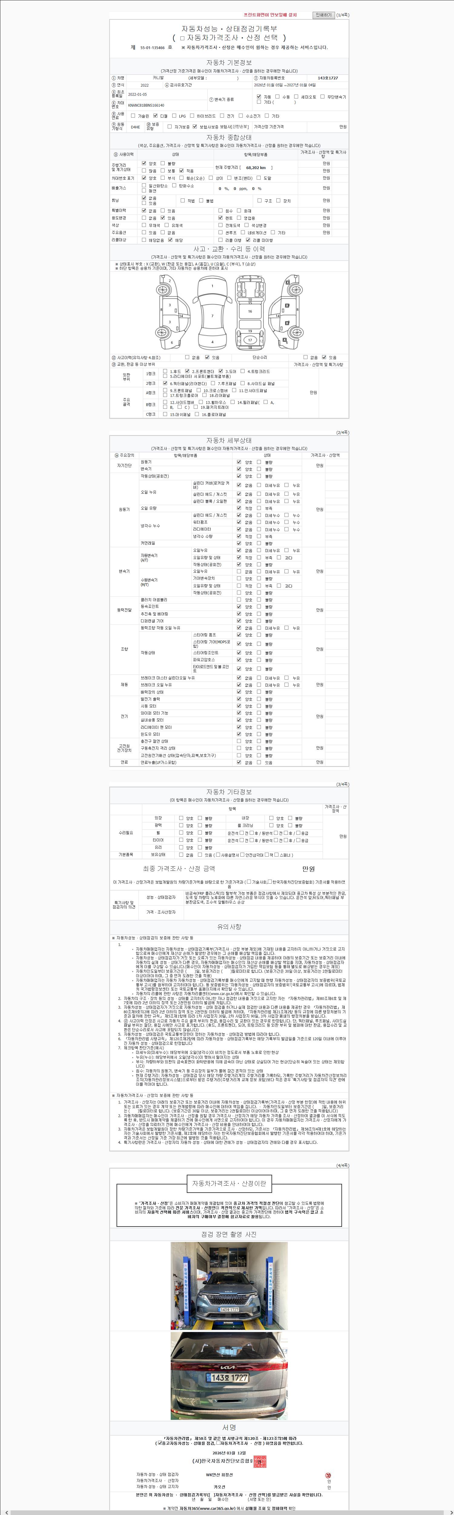 2. 차량 등록증이나 성능점검지 등을 상담자에게 요청및 확인하시고 사전에 미리 점검 하시기를 권유드립니다.