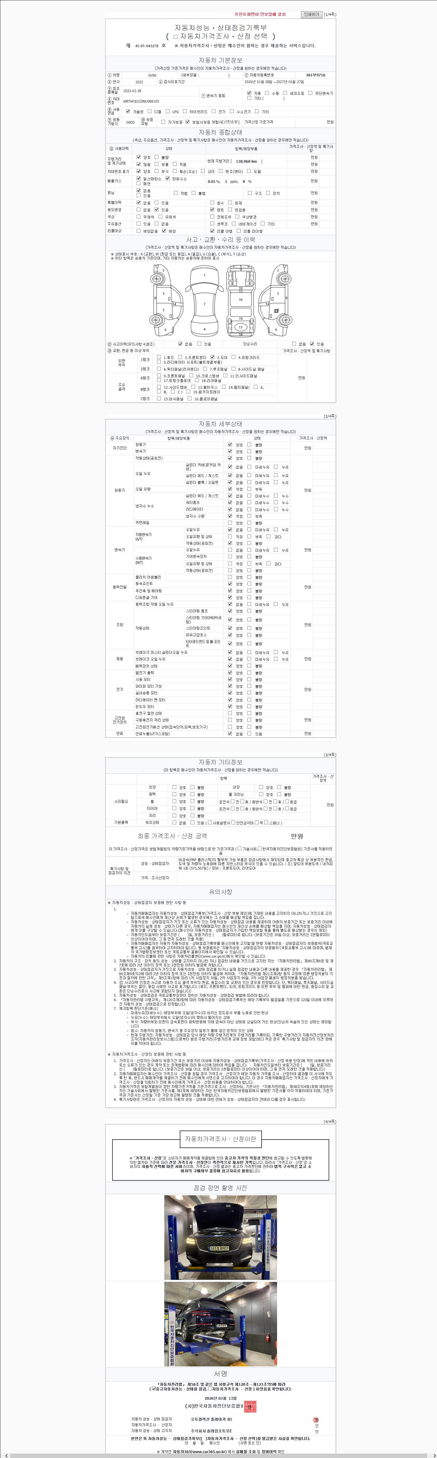 2. 차량 등록증이나 성능점검지 등을 상담자에게 요청및 확인하시고 사전에 미리 점검 하시기를 권유드립니다.