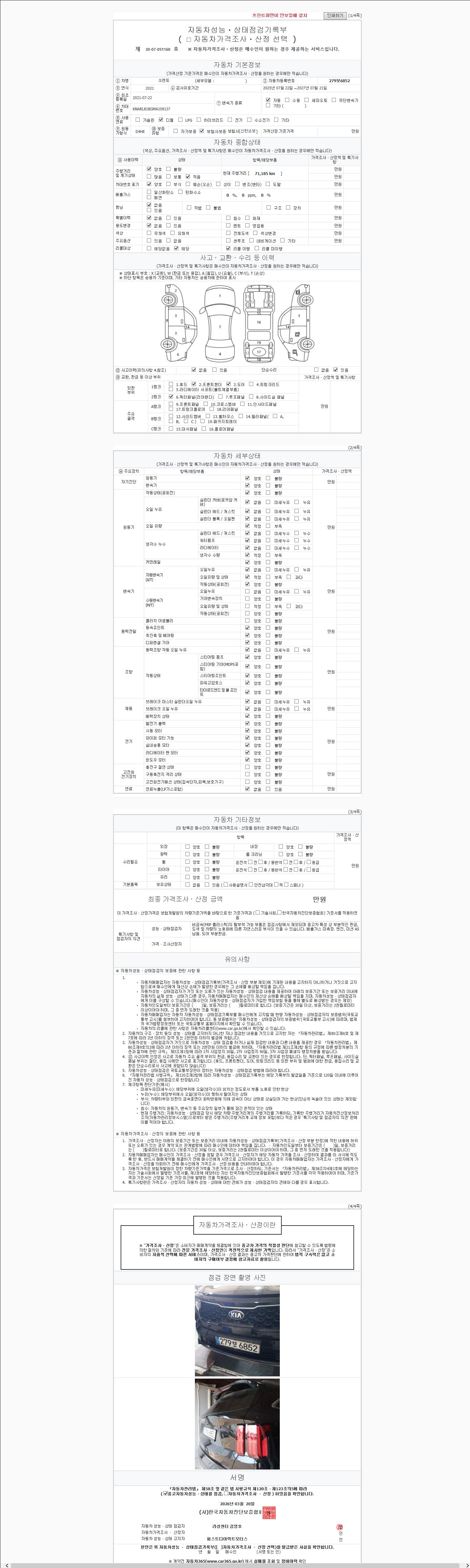 2. 차량 등록증이나 성능점검지 등을 상담자에게 요청및 확인하시고 사전에 미리 점검 하시기를 권유드립니다.