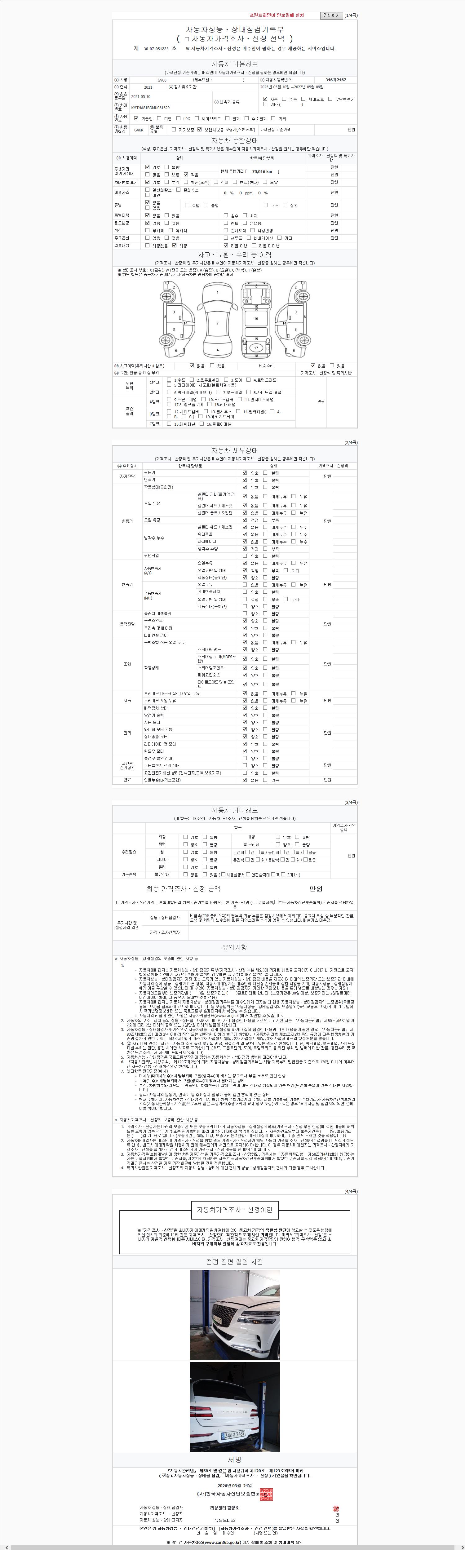 2. 차량 등록증이나 성능점검지 등을 상담자에게 요청및 확인하시고 사전에 미리 점검 하시기를 권유드립니다.