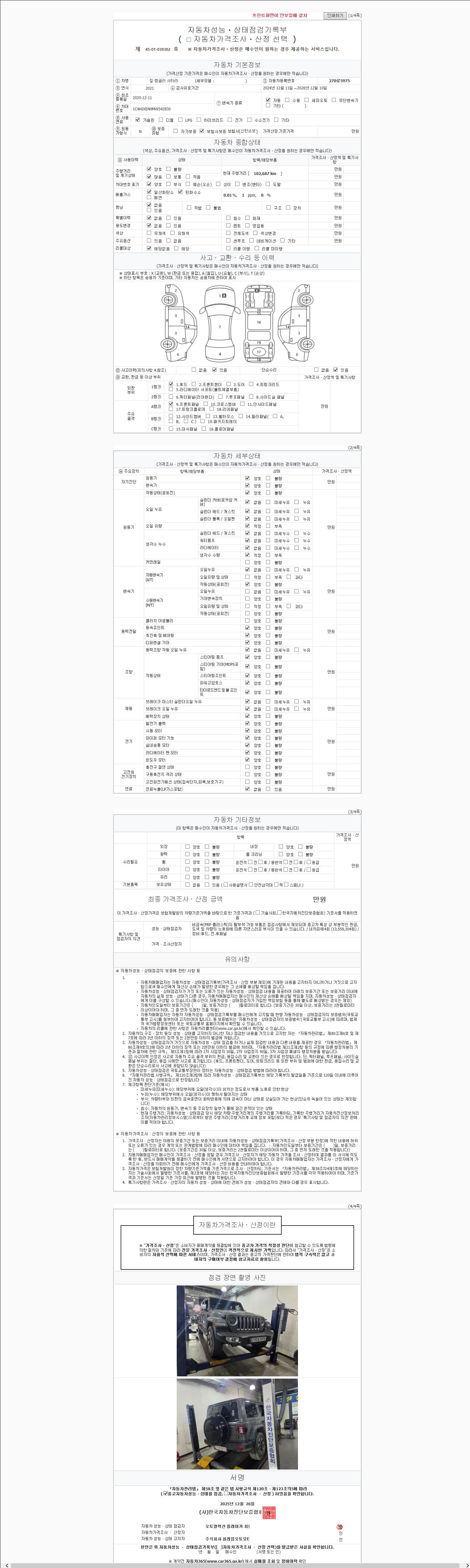 -중고자동차 매매업자를 통해 차량을 구입하실 경우 반드시 "중고자동차 성능, 상태점검 기록부"를 교뷰 받으셔야 하며, 매매업자는 반드시 의무 교부 하여야 압니다.