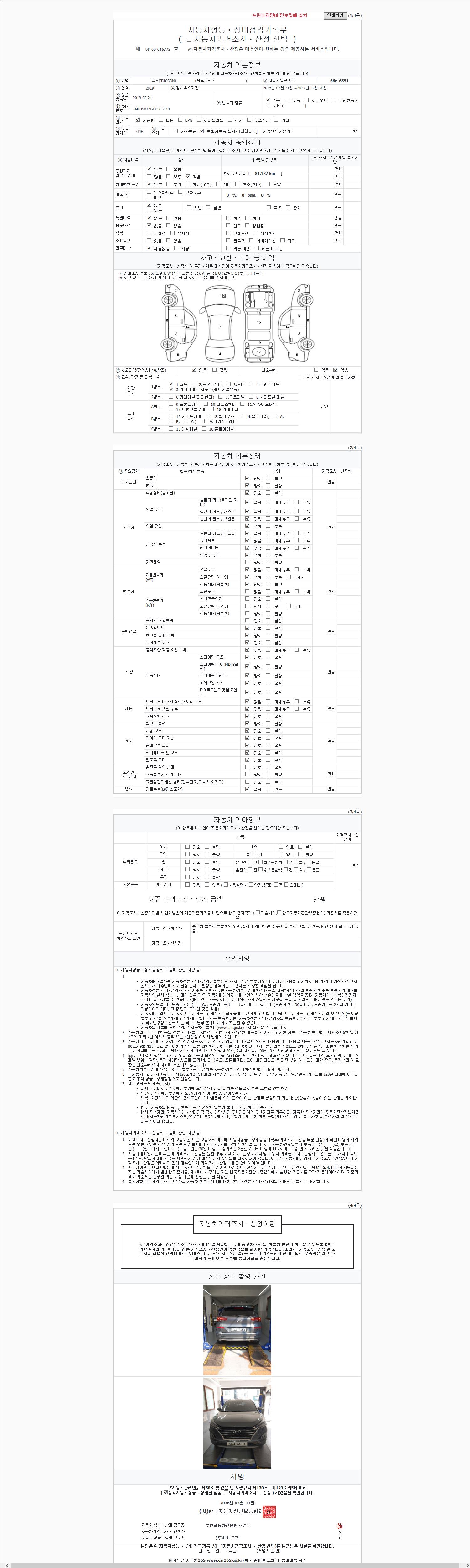 2. 차량 등록증이나 성능점검지 등을 상담자에게 요청및 확인하시고 사전에 미리 점검 하시기를 권유드립니다.