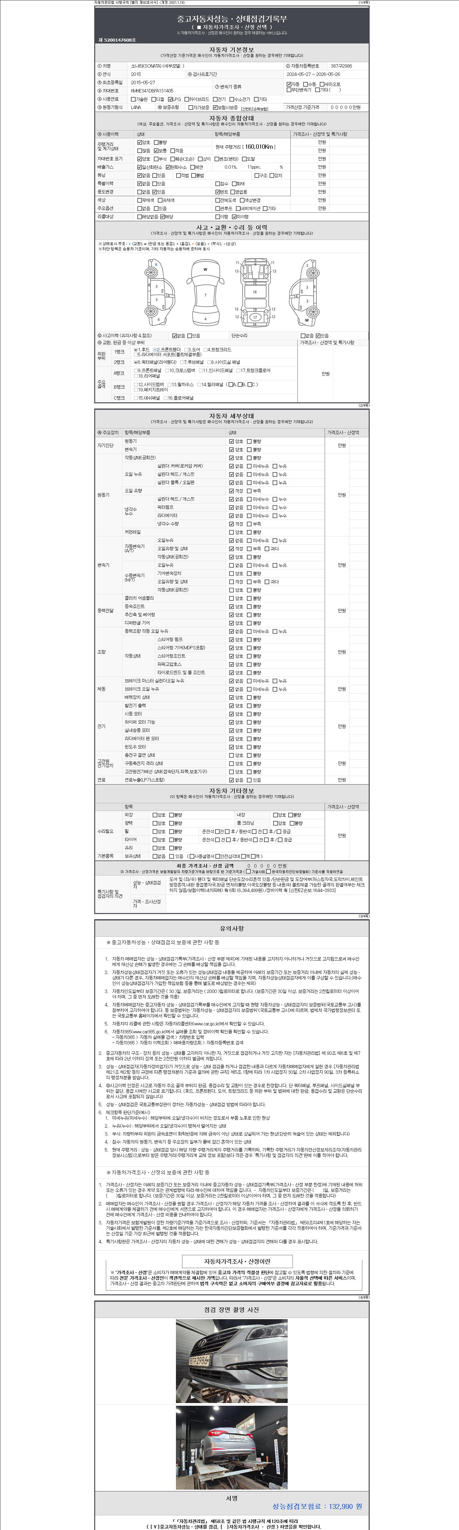2. 차량 등록증이나 성능점검지 등을 상담자에게 요청및 확인하시고 사전에 미리 점검 하시기를 권유드립니다.