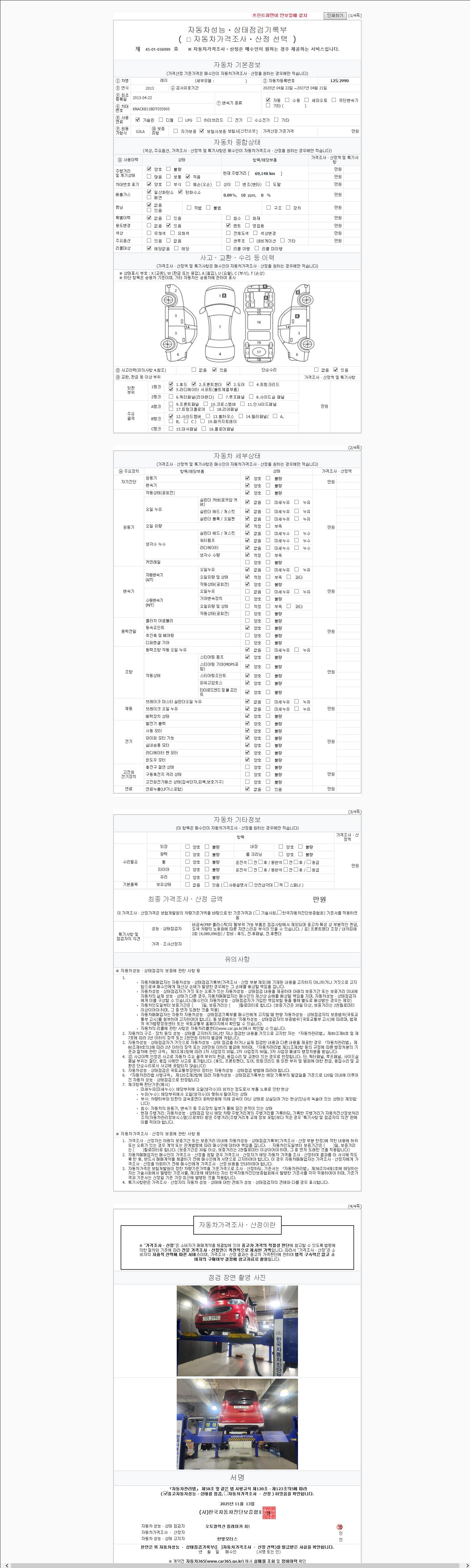 2. 차량 등록증이나 성능점검지 등을 상담자에게 요청및 확인하시고 사전에 미리 점검 하시기를 권유드립니다.