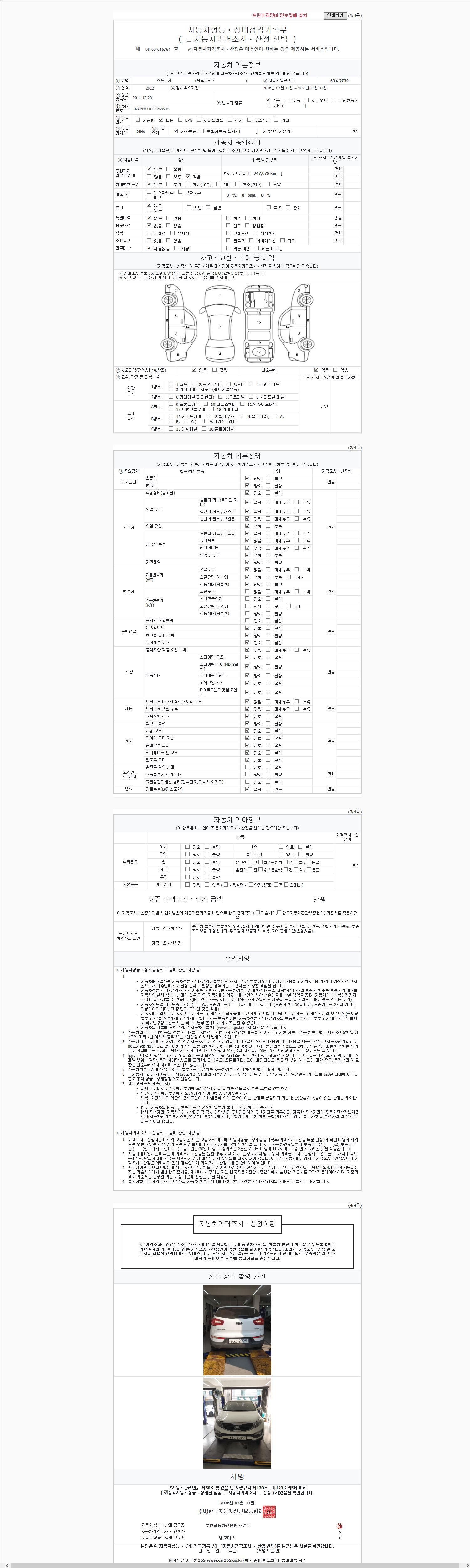 2. 차량 등록증이나 성능점검지 등을 상담자에게 요청및 확인하시고 사전에 미리 점검 하시기를 권유드립니다.