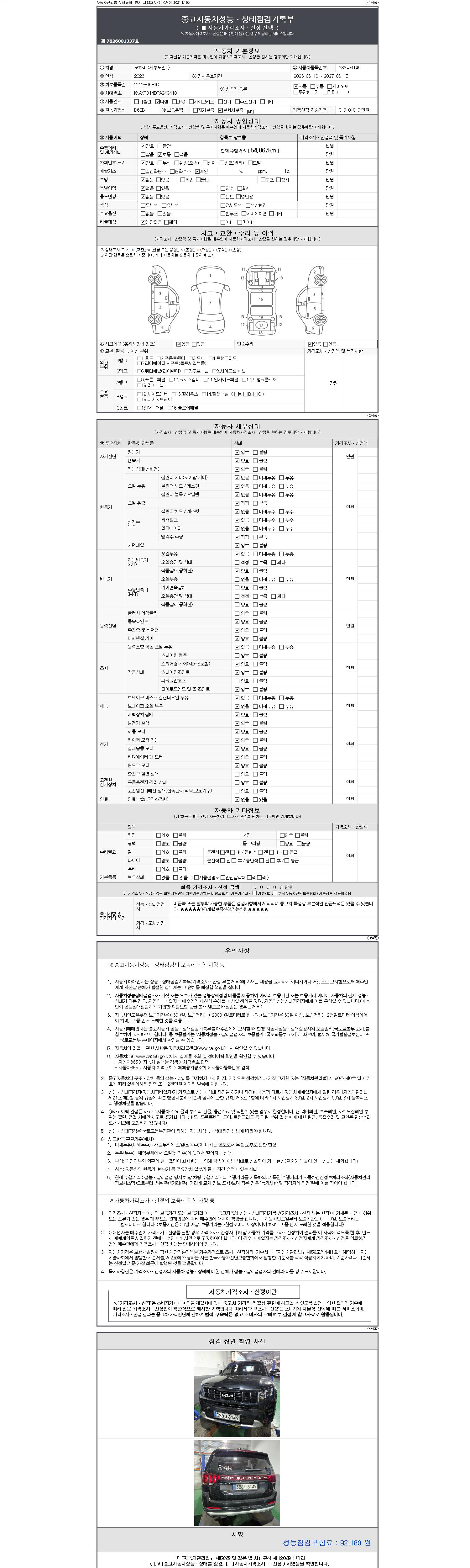 2. 차량 등록증이나 성능점검지 등을 상담자에게 요청및 확인하시고 사전에 미리 점검 하시기를 권유드립니다.