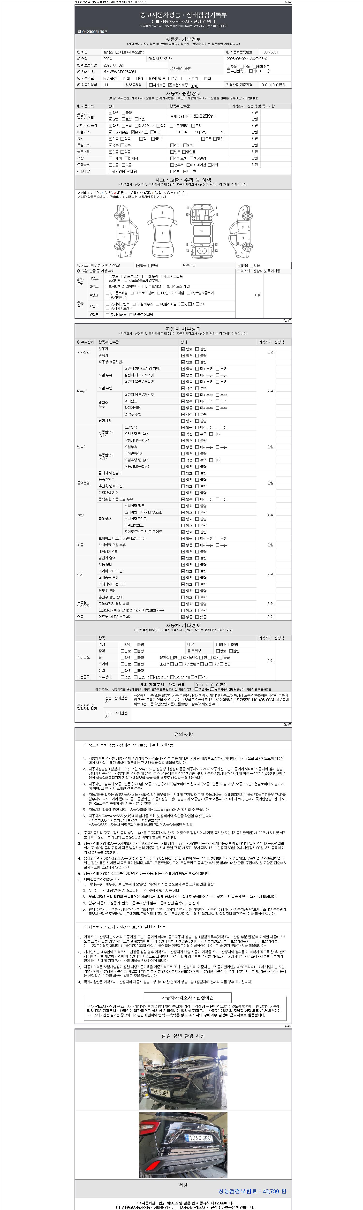 2. 차량 등록증이나 성능점검지 등을 상담자에게 요청및 확인하시고 사전에 미리 점검 하시기를 권유드립니다.