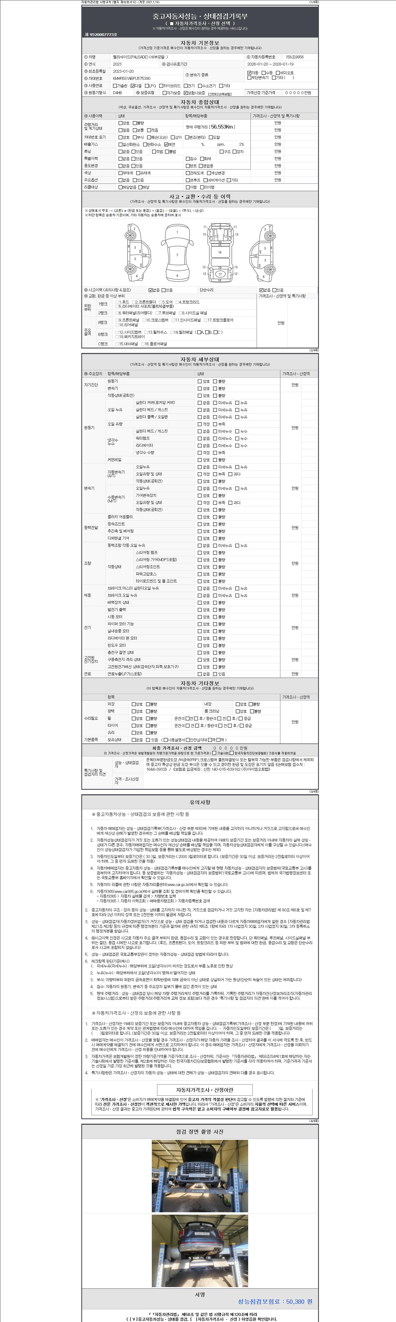 2. 차량 등록증이나 성능점검지 등을 상담자에게 요청및 확인하시고 사전에 미리 점검 하시기를 권유드립니다.