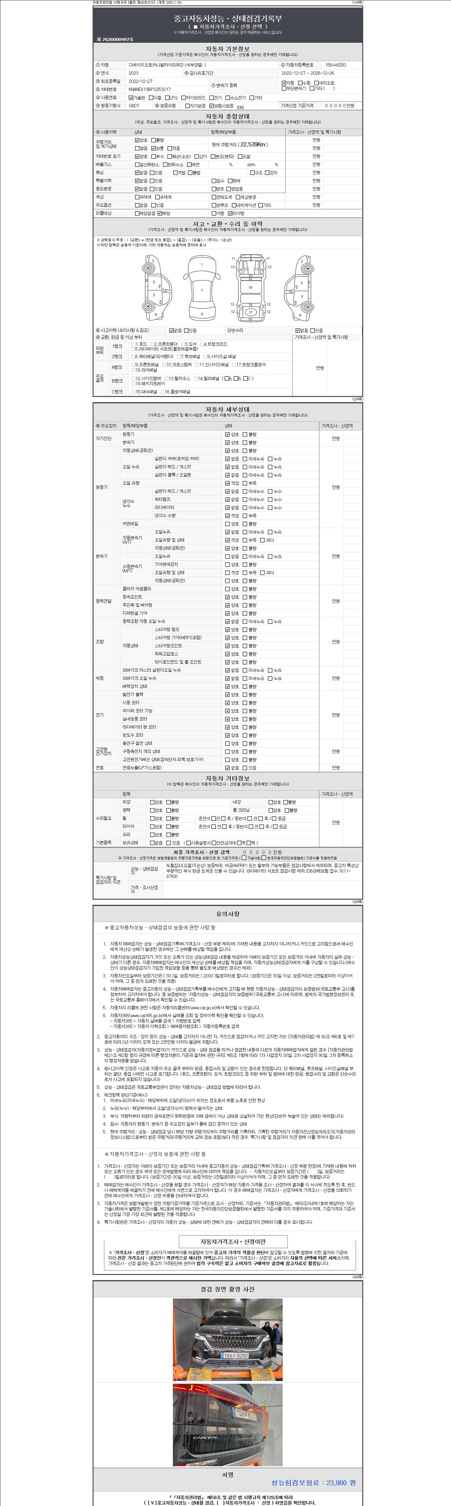 2. 차량 등록증이나 성능점검지 등을 상담자에게 요청및 확인하시고 사전에 미리 점검 하시기를 권유드립니다.