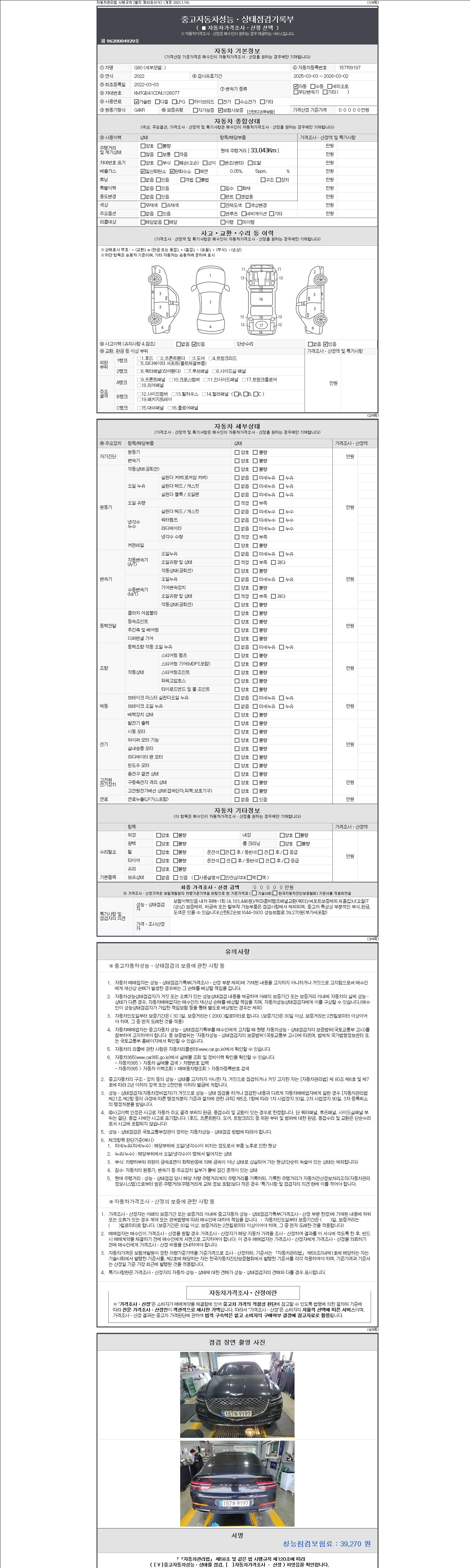 2. 차량 등록증이나 성능점검지 등을 상담자에게 요청및 확인하시고 사전에 미리 점검 하시기를 권유드립니다.