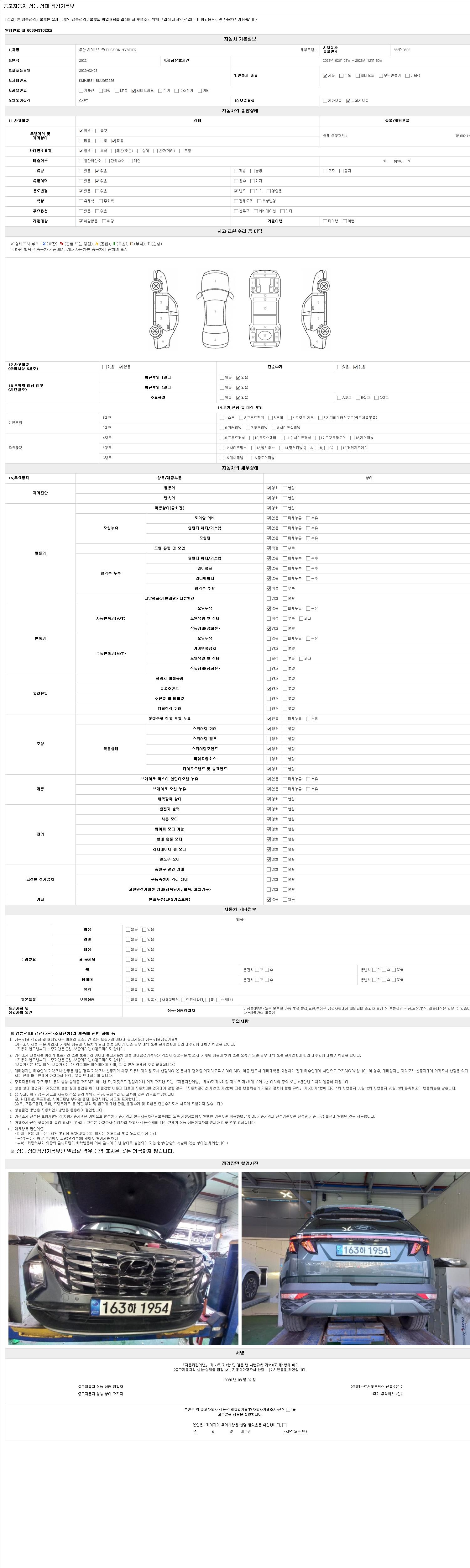 2. 차량 등록증이나 성능점검지 등을 상담자에게 요청및 확인하시고 사전에 미리 점검 하시기를 권유드립니다.
