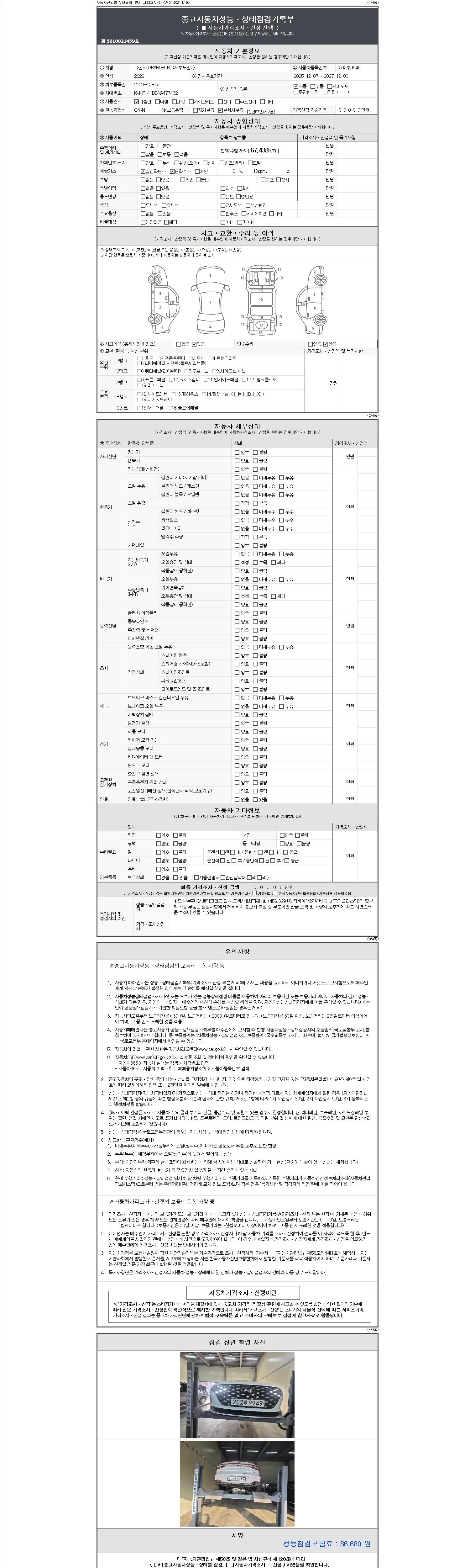 2. 차량 등록증이나 성능점검지 등을 상담자에게 요청및 확인하시고 사전에 미리 점검 하시기를 권유드립니다.