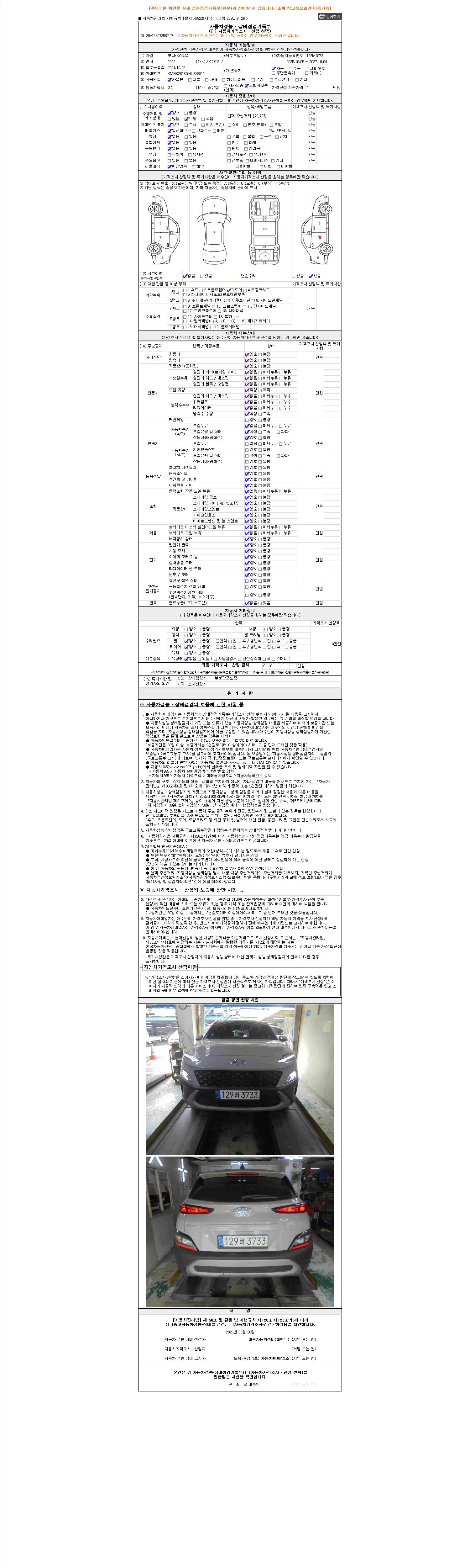 2. 차량 등록증이나 성능점검지 등을 상담자에게 요청및 확인하시고 사전에 미리 점검 하시기를 권유드립니다.