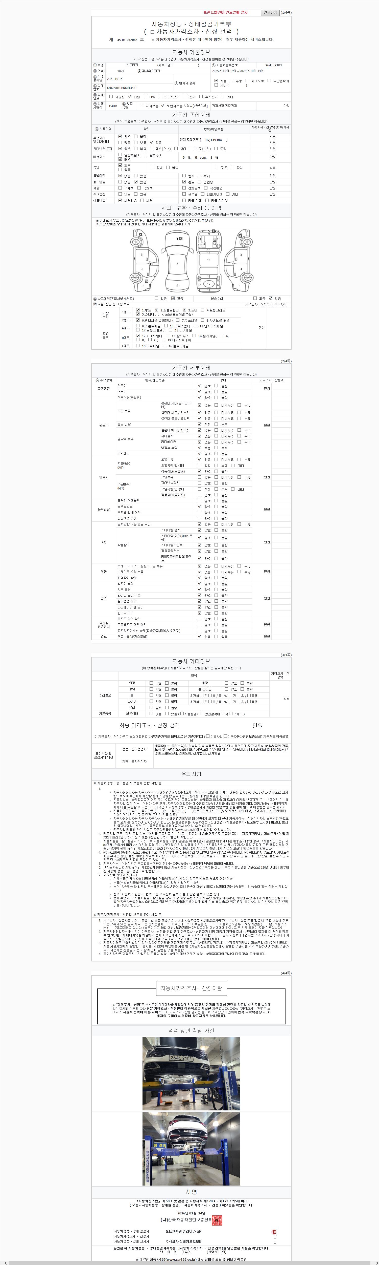 2. 차량 등록증이나 성능점검지 등을 상담자에게 요청및 확인하시고 사전에 미리 점검 하시기를 권유드립니다.