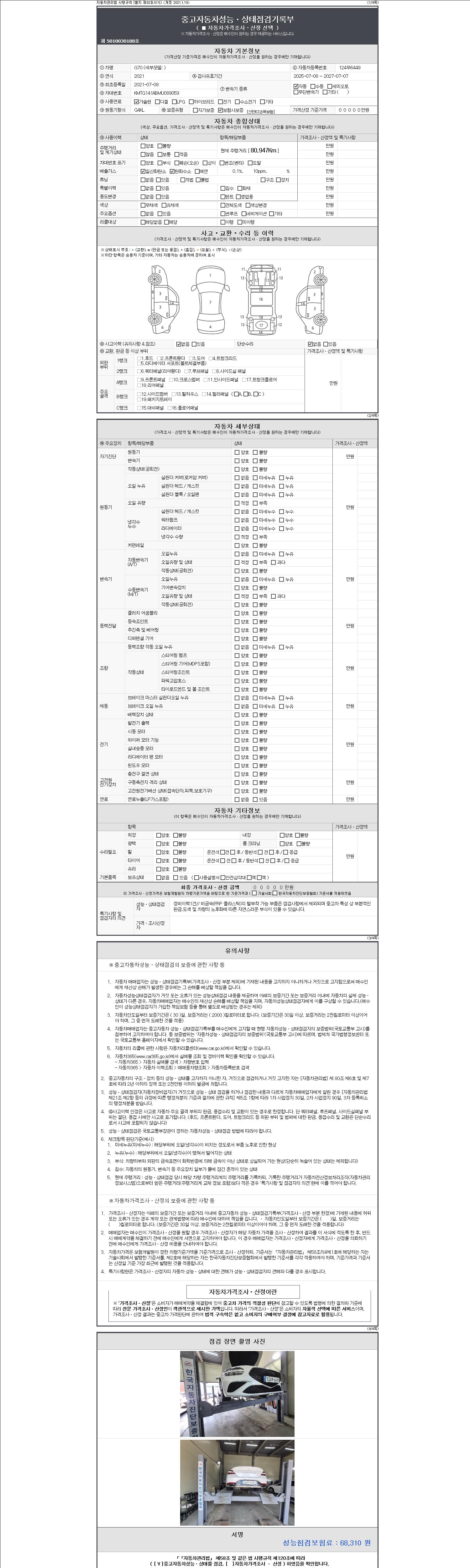 2. 차량 등록증이나 성능점검지 등을 상담자에게 요청및 확인하시고 사전에 미리 점검 하시기를 권유드립니다.