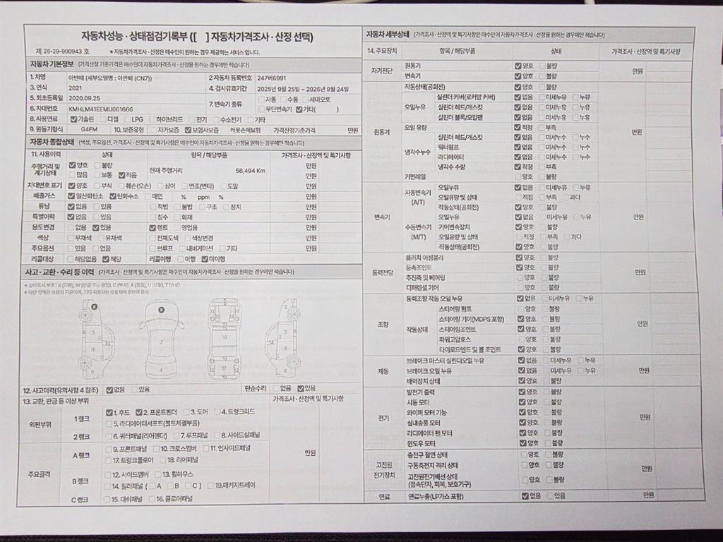 2. 차량 등록증이나 성능점검지 등을 상담자에게 요청및 확인하시고 사전에 미리 점검 하시기를 권유드립니다.