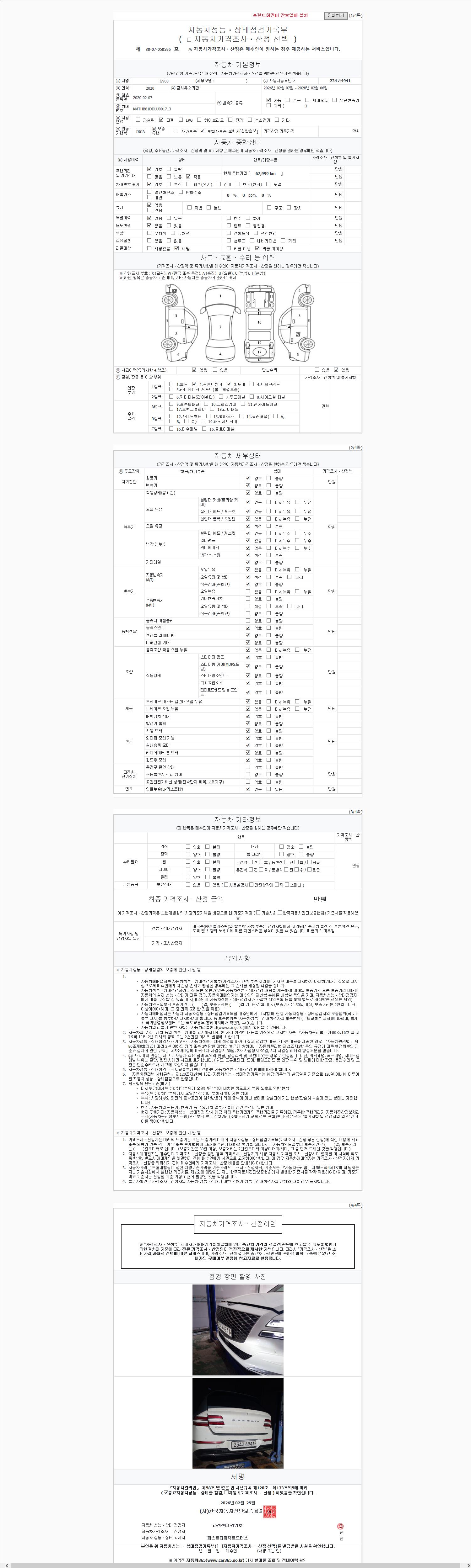 | 주행거리 | 67,944 km | 차량번호 | 234가4941 |
